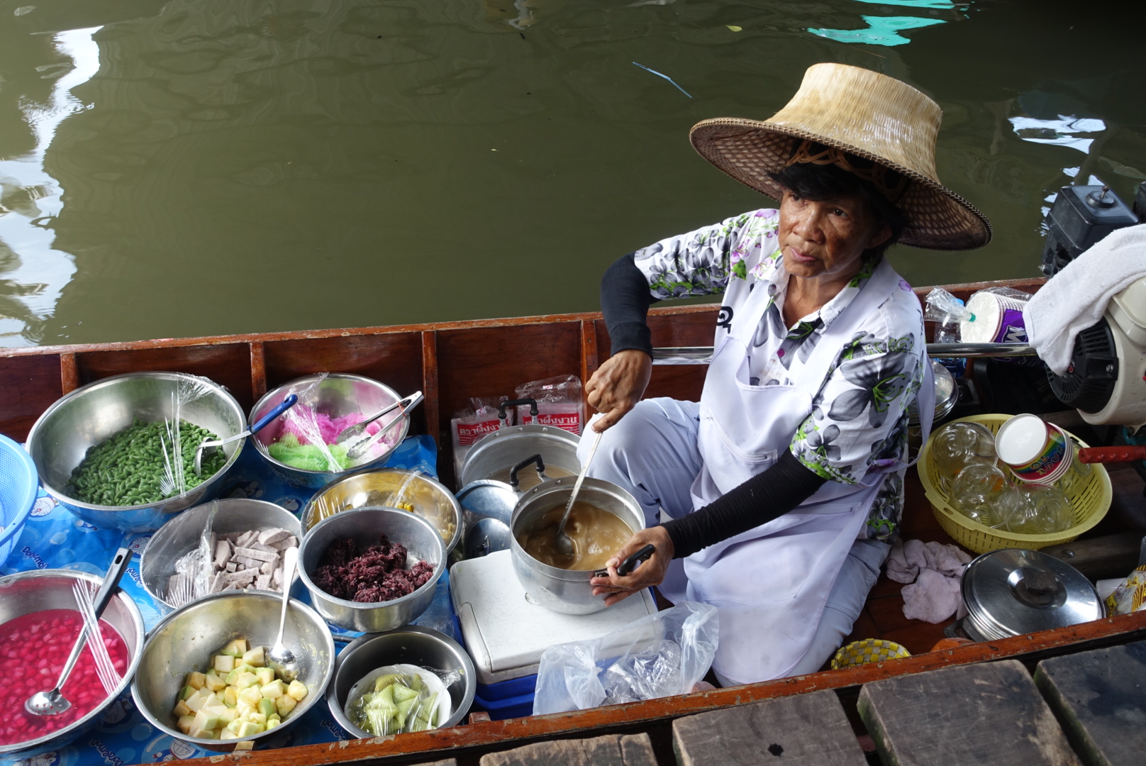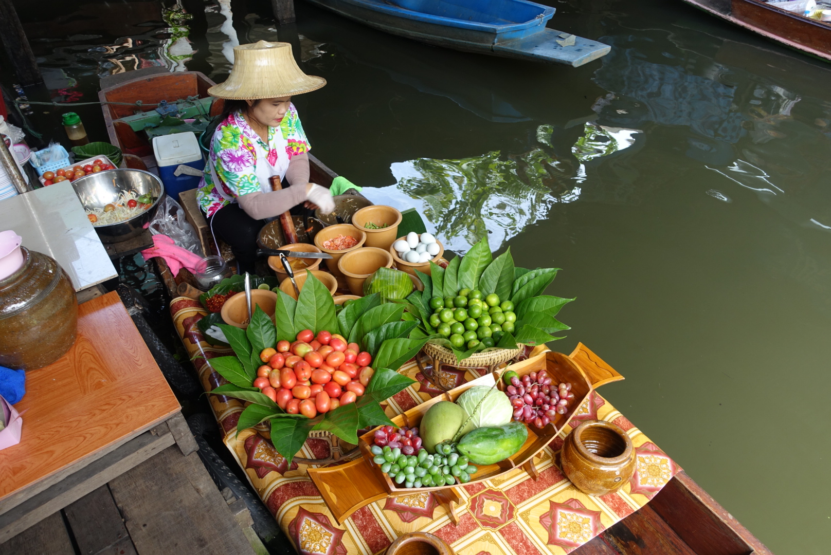 Man sollte den Markt mit Hunger besuchen, ein Stand am anderen. Das Essen wird teilweise direkt in den langen Booten auf dem Fluss zubereitet. Es ist ein Erlebnis über diesen Markt zu spazieren! Der Weg hat sich gelohnt.