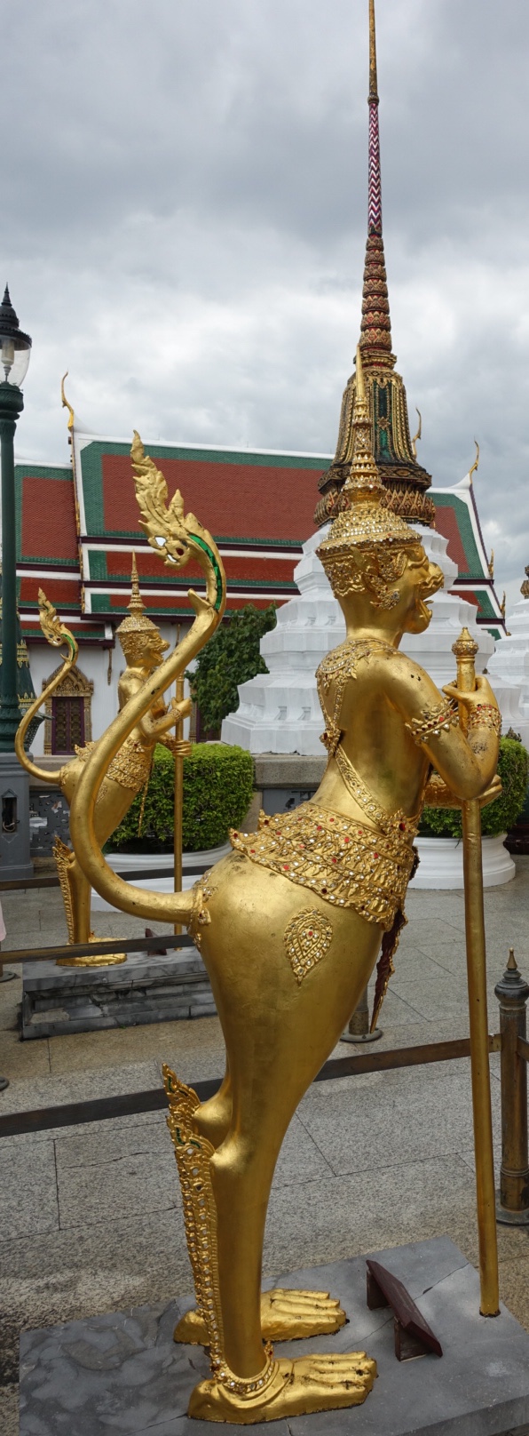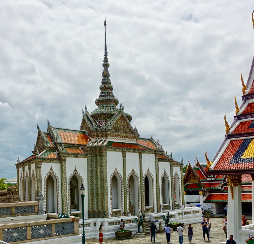 Am Grand Palace (Eintritt 500 Baht) wird man genötigt T-Shirts und Hosen zu kaufen (jeweils 250 Baht), wenn man nicht entsprechend angezogen ist. Ich habe ein schulterfreies Oberteil an und dachte, dass mein grosses Tuch reicht. In Myanmar hat das immer super funktioniert. Nicht so im Grand Palace in Bangkok. Ich musste mir ein T-Shirt für 250 Baht kaufen! Dann begibt man sich mit tausenden Touristen auf eine sehr kleine Fläche mit sehr vielen Tempeln und vor allem dem berühmten smaragdenen Buddha. Vom Tha Chang Pier sollte dann auch wieder die günstige orangene Linie zurück fahren, denn wir sind mit dieser Linie bis dorthin gefahren.