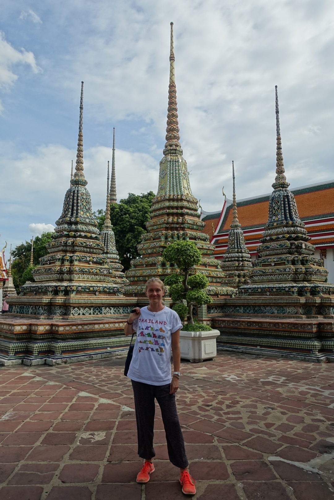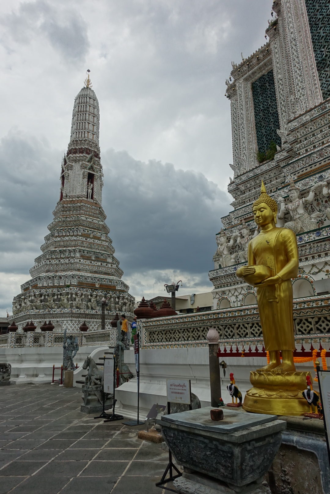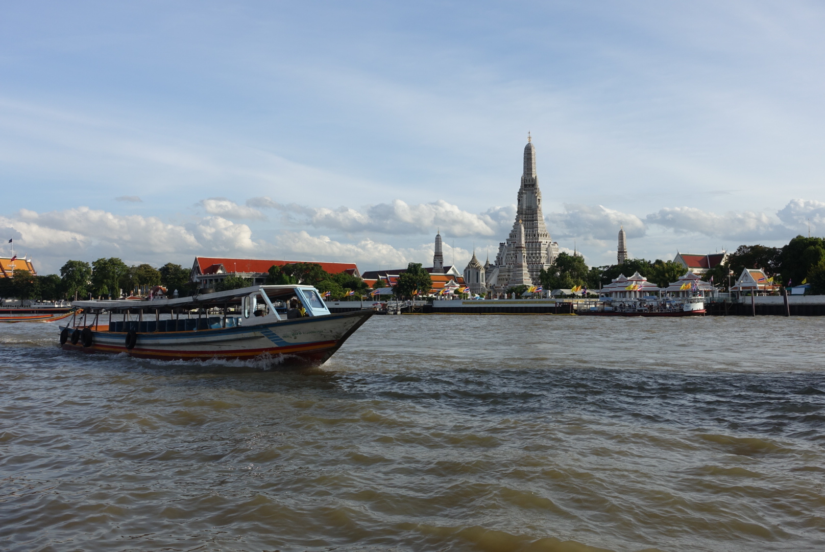 Von Tempeln und Buddhas hatte ich ja nach Myanmar erstmal genug, so dass ich mir dafür eine Woche Zeit liess. Das alte Bangkok mit seinen Tempeln liegt etwas entfernt von meinen Unterkünften, jedoch mit dem Skytrain bis Saphan Taksin super gut zu erreichen. Dort steigt man nicht in ein überteuertes Touriboat sondern nimmt am Sathorn Pier einfach für 15 Baht die orangene Linie. Die hält nach einigen Stopps auch am Wat Arun, einem der schönsten und wichtigsten Tempel in Bangkok. Man wird übrigens nur mit bedeckten Knien und SCHULTERN in die Tempel in Bangkok gelassen. Sie sind da sehr streng, wie ich später noch zu spüren bekomme.