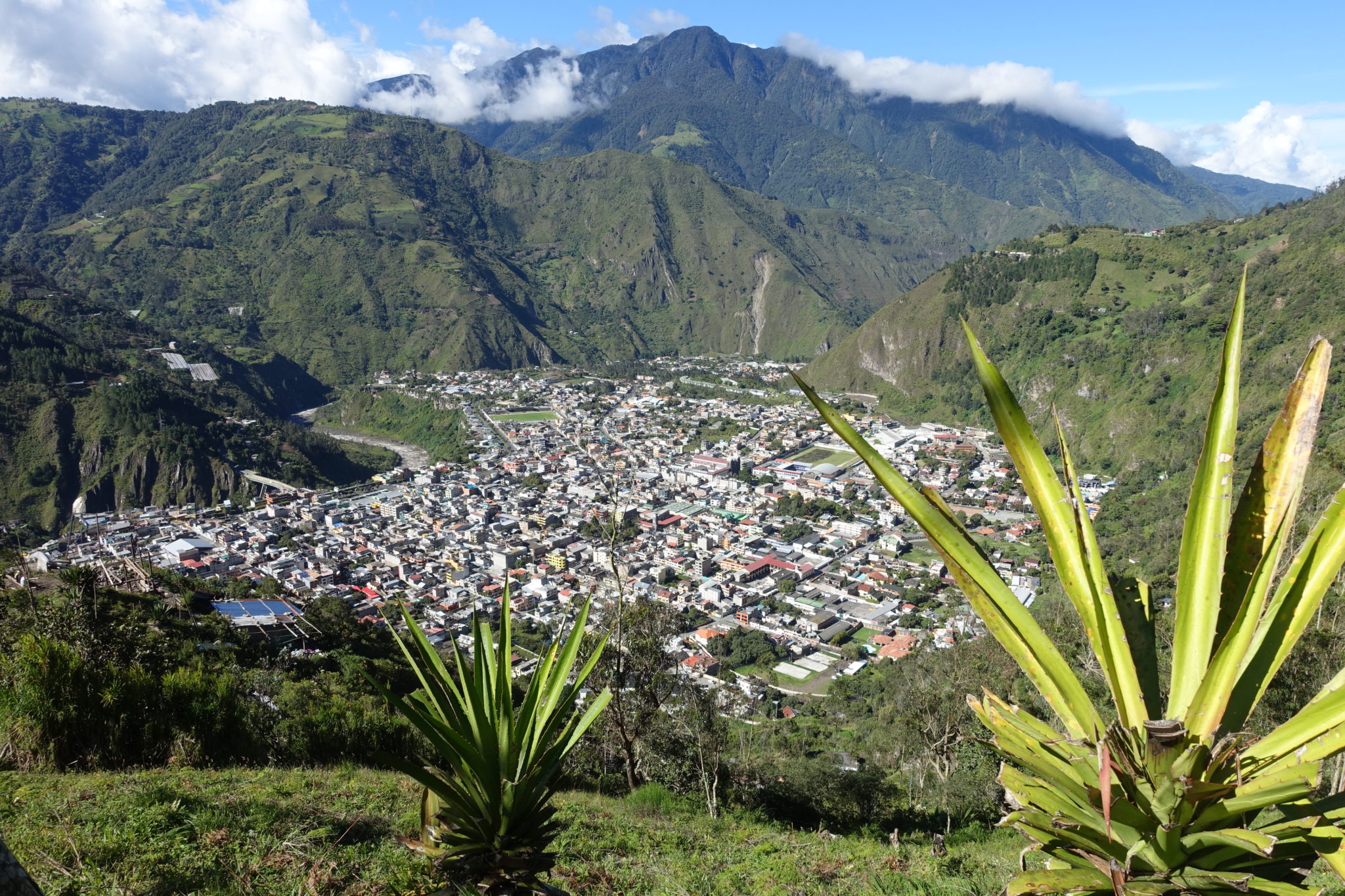 Stephanie reist ab und ich erhalte ein exzellentes Einzelzimmer unterm Dach für nur 15 Dollar. In Baños kann man einige tolle Wanderungen unternehmen, ich mache mich auf zum Aussichtspunkt der Virgin Maria und weiter zu einem weiteren Aussichtspunkt auf die beeindruckende Vulkanlandschaft die Baños umgibt. Abends esse ich im Swiss Bistro, weil der Musiker der neu neben mir wohnt, dort eigentlich ein Konzert geben sollte, aber dem ist wohl 18 Uhr noch nicht so. Das Essen schmeckt natürlich nicht wie in der Schweiz. Am nächsten Tag gönne ich mir eine Massage, die es hier schon für 25 Dollar die Stunde gibt. Abends geniesse ich ein Bad in den touristischeren Thermalbädern Piscina de la Virgen. Das Bad hat täglich zwischen 16 und 18 Uhr für Reinigungsarbeiten geschlossen, dabei wird das gesamte Wasser abgelassen. Das ist gut zu wissen, denn diese braune Suppe sieht echt nicht hygienisch aus. Auf keinen Fall einen hellen einfarbigen oder weissen Bikini tragen!