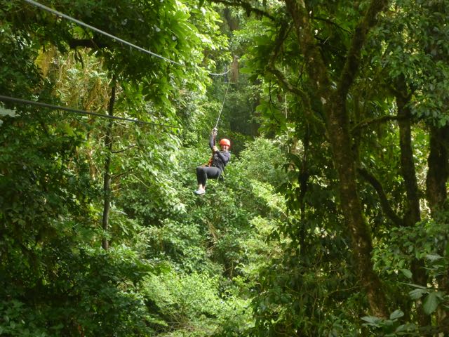 Beim Ziplining mit 100% Aventura wundern wir uns wie viel los ist. Natürlich haben wir wiedermal irgendeine doofe Amigruppe erwischt, dadurch ist ziemlich Massenabfertigung angesagt. Uns werden die Sicherungsgurte angezogen, dann gibt es eine kurze Einführung ins Ziplining, damit wir das auch gut überstehen und uns anschliessend keine Finger fehlen. Vor uns liegt das längste Ziplining Südamerikas, mit einer Strecke von 1,5 km über die Schlucht, Kopf voraus im Superman Stil, wenn man will. Ich freu mich riesig drauf, für 50 Dollar bekommen wir 13 aufregende Stationen. Die ersten sind kurz und gehen von Baum zu Baum durch den Dschungel, dann werden sie länger und bald sind wir am Abseiling, wo sie mich recht schnell ablassen, dann gehts bald über die Schlucht, erst normal, dann im Superman Kopf voran. Er ruft noch, lass die Hände zusammen und ich mache sie auf und filme mit der GoPro, darauf gerät die ganze Sache ins Schlingern, leicht beängstigend mit der Schlucht unter mir. Zum Schluss kommt der Mega Tarzan Swing, wo man kurz einen freien Fall hat und dann ausschwingt. Ich bin mir nicht sicher gewesen, ob ich das mache, aber jetzt steht man irgendwie hier oben und kann zum Glück nicht sehen was kommt. Ich gehe die lange Brücke vor, vorn angekommen, machen die zwei wieder extrem routiniert ihren Job. Ich stecke in einem Klettergurt und halte zwei blaue Seile fest und dann werde ich in die Tiefe gezogen. Ich schreie den ganzen Dschungel zusammen. Ein ganz tolles Erlebnis, bin froh 100% Aventura gewählt zu haben!