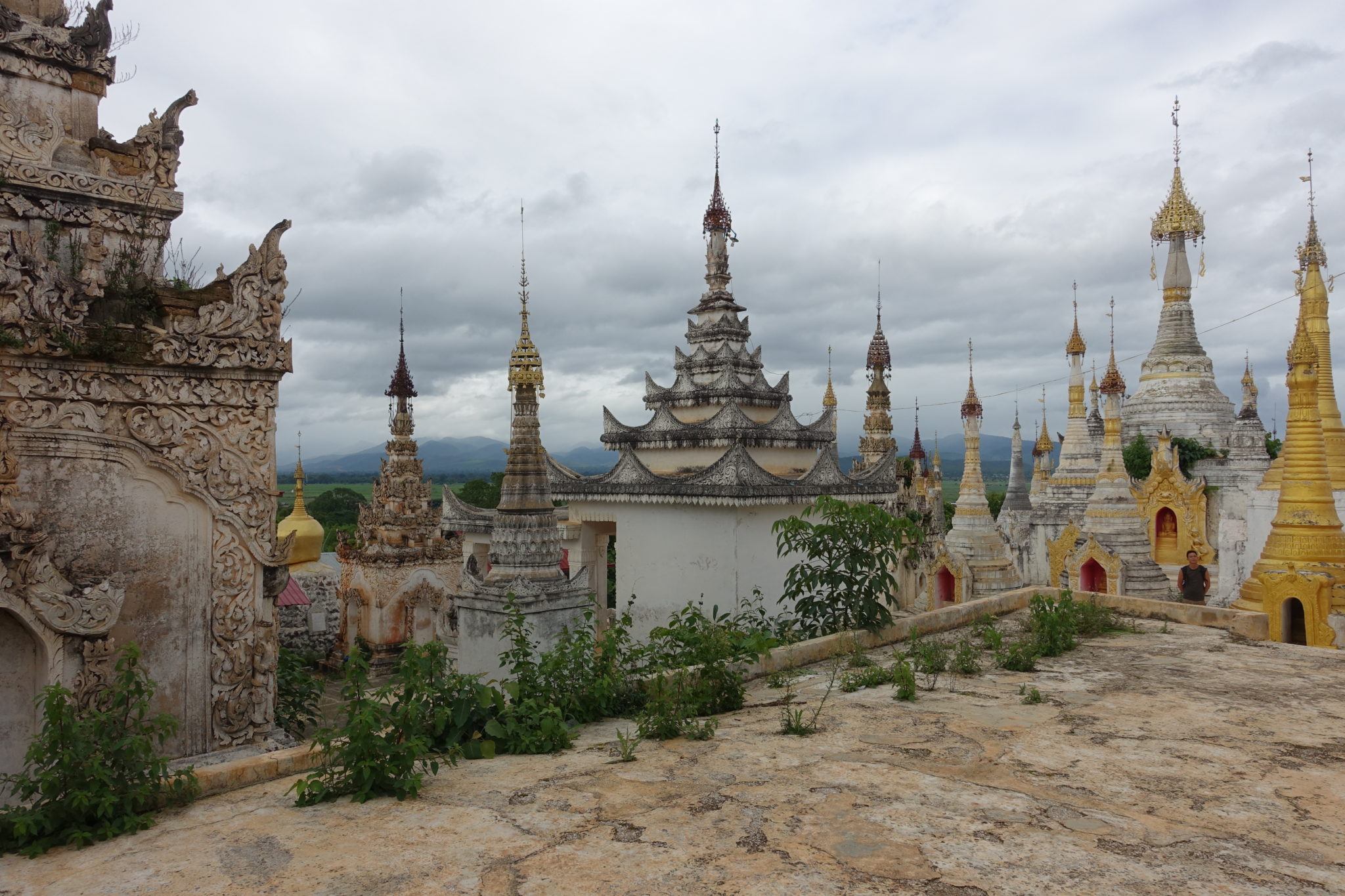 Ein weiteres highlight ist der Halbtagesausflug nach Pindaya, von Kalaw aus oder so wie wir es gemacht haben, vom Inlay Lake startend. Wir haben uns dazu einen eigenen Taxifahrer buchen müssen, da wir in Myanmar nicht Auto oder Moped fahren dürfen. Ausserdem sind ja die Regionen, in denen sich Touristen aufhalten dürfen immernoch begrenzt. Wir fahren also gen Norden, durch die traumhaftesten Landschaften, die ich seit langem gesehen habe. Rolling hills sagt man so schön im Englischen, hügelige Landschaften, mit goldenen Stuppas, rote Erde (wie in Australien) und Ochsenkarren auf den Feldern. Wenn es nach mir gegangen wäre, hätte der Fahrer an jeder Ecke halten müssen. Aber der konnte kaum Englisch und so fuhren wir direkt zu der grossen Höhle mit den goldenen Buddhas.