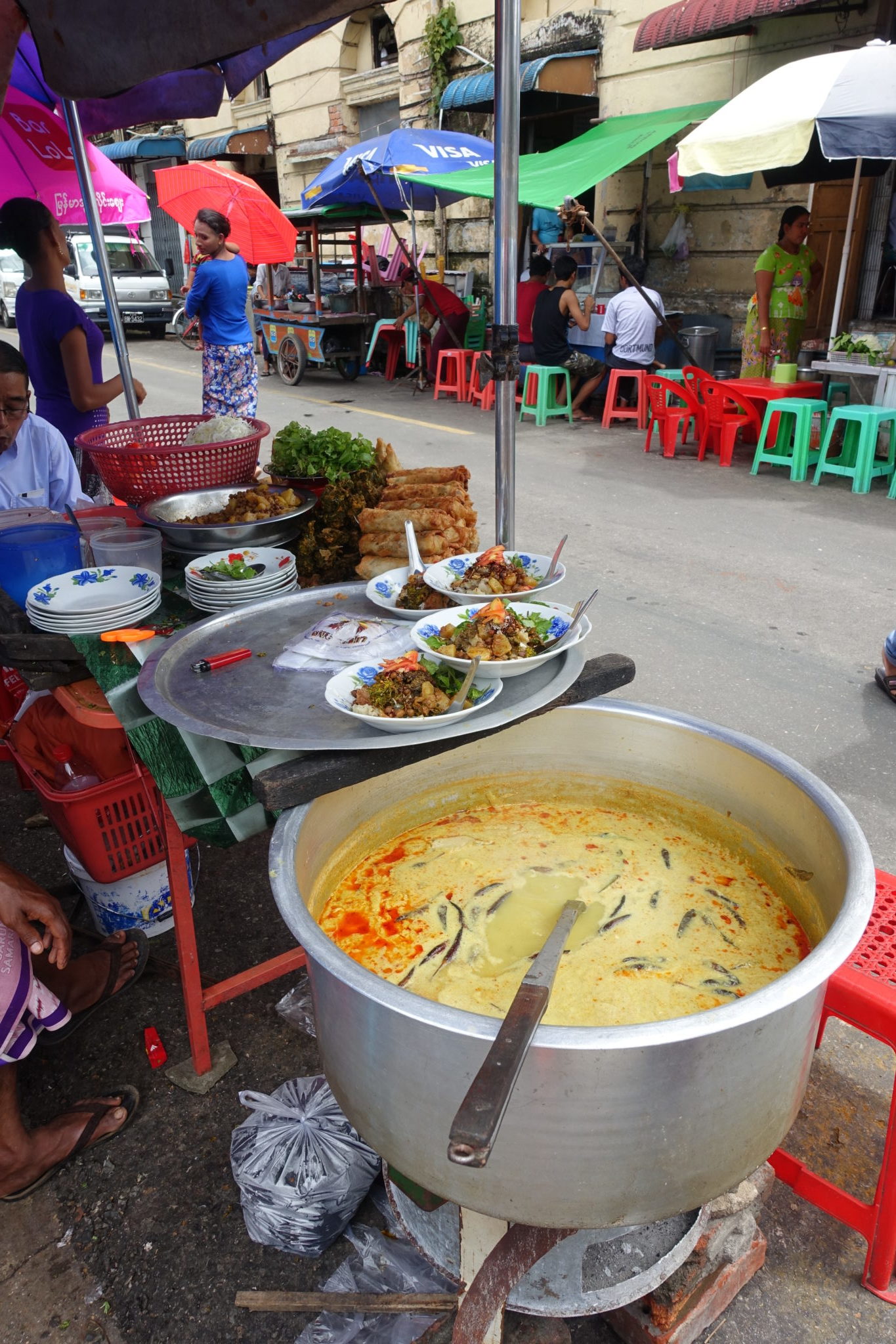 Wir essen am Rand vom Bogyoke Aung San Market (natürlich recht teuer), laufen noch kurz über den Markt, um dann endlich unser Zimmer zu beziehen. Eine Wohltat so ein Doppelzimmer im Backpacker Bed & Breakfast mit eigenem Bad nach all den Hostels.