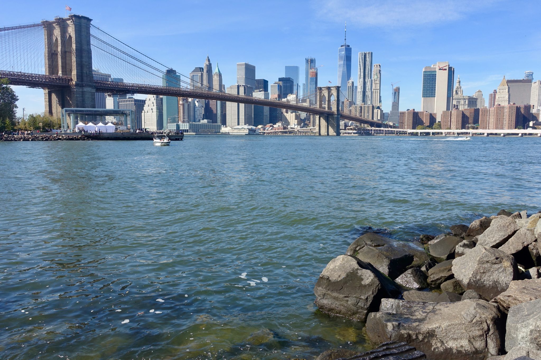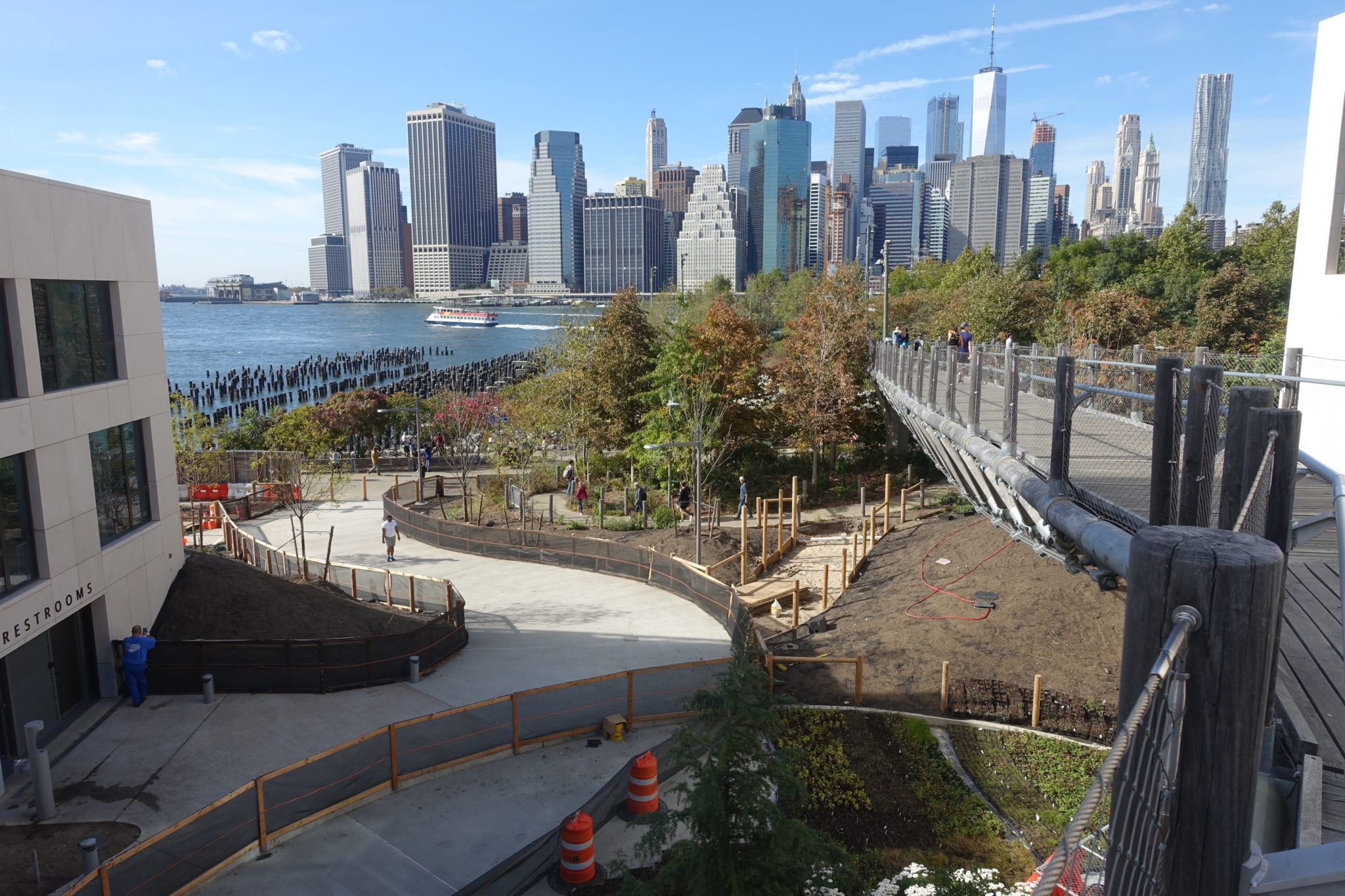 Sonntagvormittag folge ich der Empfehlung von Raoul zum Dumbo Market. Der sich auch Brooklyn Fleamarket nennt und direkt unter der Manhatten Bridge liegt. Dieser Flohmarkt bietet viel und ist absolut sehenswert. Ich laufe anschliessend weiter an die Küste des Hudson Rivers und staune, wie viele Leute sich dort im Brooklyn Park aufhalten. Klar bei dem Wetter, die Sonne strahlt, es sind ca. 20 Grad (Mitte Oktober!) und man hat einen traumhaften Blick auf die Skyline von Manhatten. Ich laufe bis zum Ende und entdecke eine Art Skywalk über einen Highway in Richtung Brooklyn Heights. Der scheint recht neu zu sein und bietet nochmal einen tollen Blick auf die Skyline.
