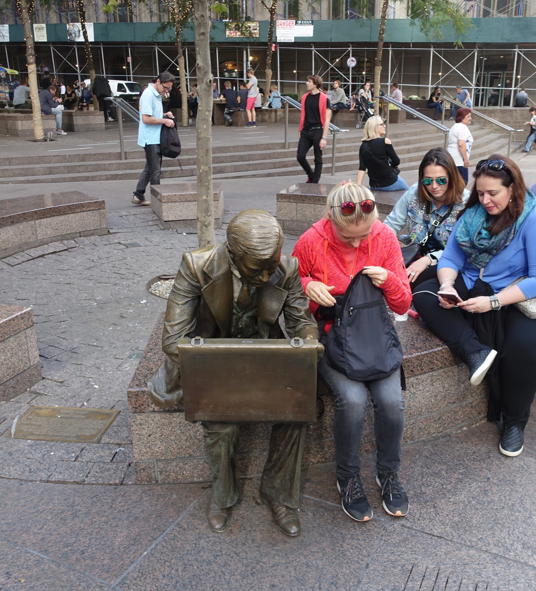 Es ist noch recht nett die 14th Street entlang zu laufen, es scheint nicht mehr so touristisch, viele Schuhläden… wir laufen bis zum Union Square, wo nach Sonnenuntergang noch richtig viel los ist. Da ich noch nicht heim will, fahre ich noch spontan zum Times Square, wo noch mehr los ist zum Samstagabend. Die Hölle, man kann kaum treten, ich staune wie es sich im Vergleich zu 2000 verändert hat. Man hat jetzt eine Art Tribüne aufgebaut, damit die Leute das Flair geniessen können. Auf dem Heimweg gerate ich noch ans Filmset von „A Billion“.