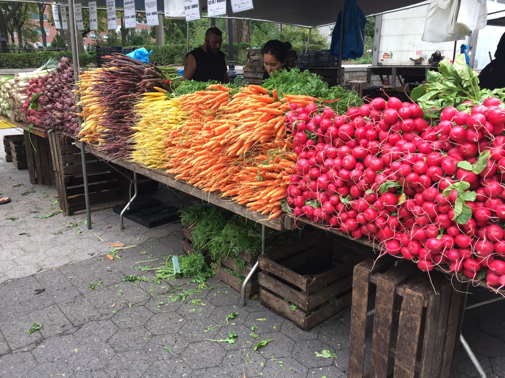 Überraschend bunt und vielfältig zeigt sich der Farmers Market auf dem Union Square. Er ist wirklich sehenswert auch wenn man nichts kauft. All die bunten Karotten, Kartoffeln und Kohlsorten, sowas habe ich noch nicht gesehen!