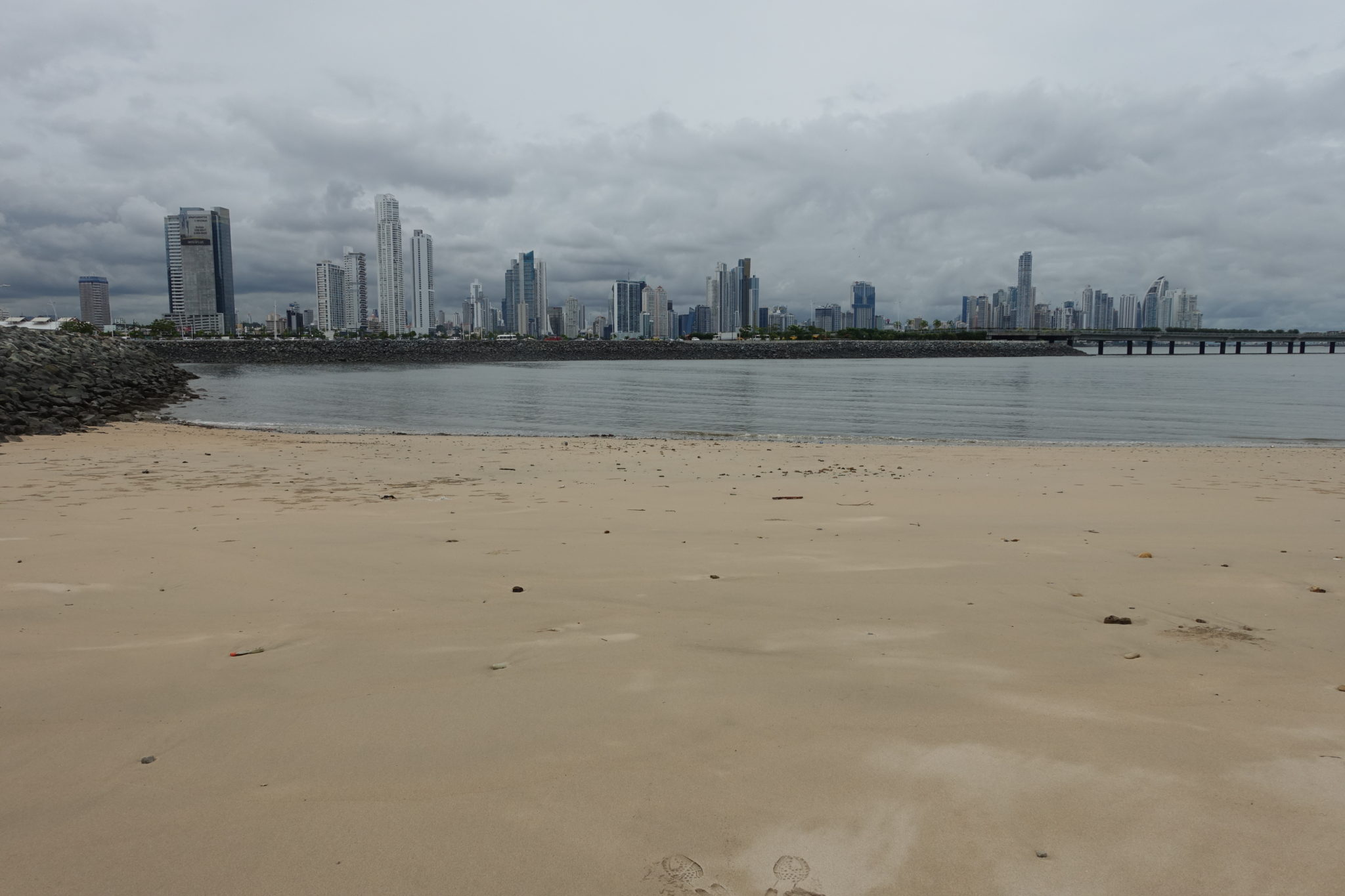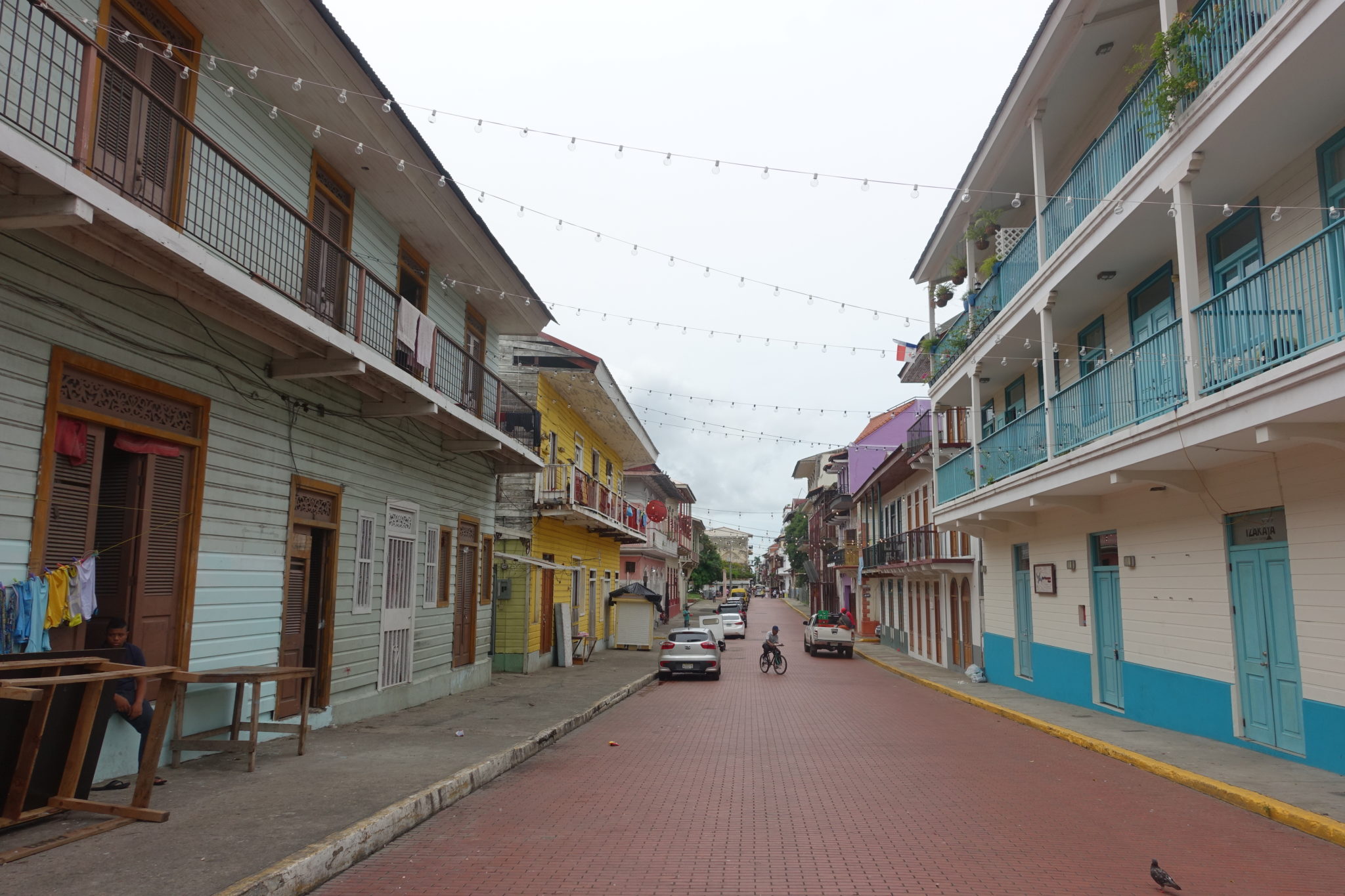 Kurz hinter der Avenida Central, erreichen wir die schön rausgeputzte Altstadt. Etwas disneylandmässig fast, so frisch angemalt und blank geputzt. Eine der vielen Kirchen bietet eine willkommene Abkühlung, der Gottesdienst endet gerade, hier sehen wir (endlich) die ersten Touristen. (Nicht dass wir sie vermisst hätten!) Alles in allem kommt uns die Stadt wie ausgestorben und sehr leer vor. Locals sieht man quasi nicht in den Strassen. Die meisten Läden sind Sonntags geschlossen. Vom Plaza de Francia (einer Art Stadtmauer) hat man einen schönen Blick auf die Skyline von Panama, sowie auf den Panama Kanal mit Biomuseum in der Ferne, wo sich die Schiffe vor dem Kanal für die Einfahrt einreihen. Am Rande der Altstadt entdecken wir eine Art Hippie Viertel, wo wir endlich einige Einheimische in ihren bunten Holzhäusern auf den Balkons sehen. Anschliessend gehts zum Fischmarkt, wo man gut und recht günstig lecker Ceviche essen kann! Im dortigen Hafen liegen noch einige kleiner Fischerboote. Wir haben der Altstadt an einem Samstag nochmal die Chance gegeben für uns zu glänzen, doch auch an diesem Tag wurden wir mit leeren Strassen enttäuscht. Immerhin finden wir noch den Strand der Stadt. Aber in dem eher schmutzigen Wasser will auch niemand baden, somit sind wir hier alleine und bummeln noch etwas die Promenade entlang. Man benötigt eigentlich nur einige wenige Stunden um Panama City gesehen zu haben.
