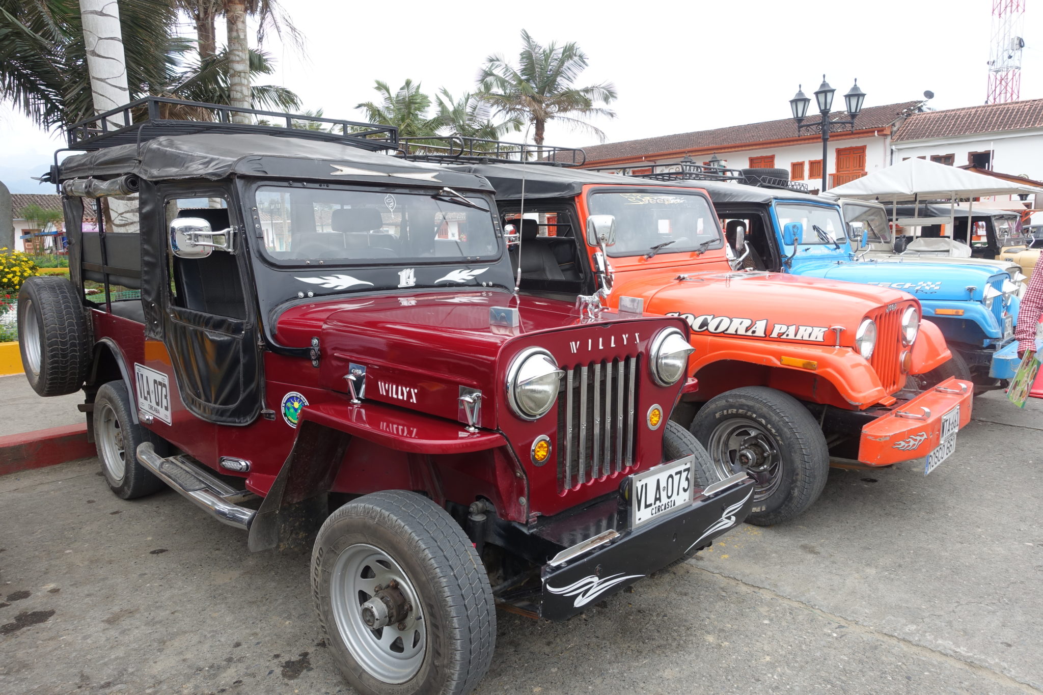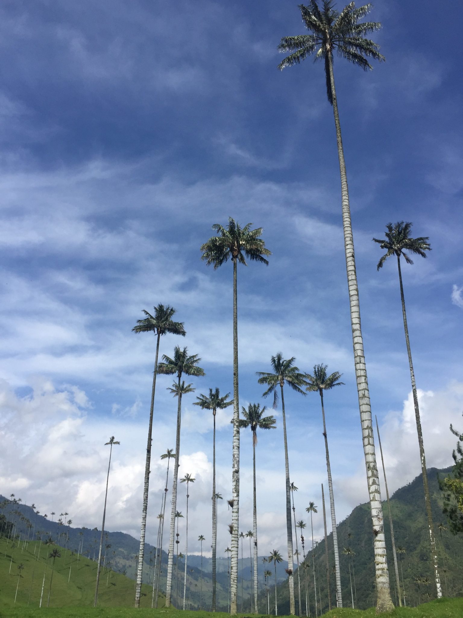 Salento steht für die berühmten langen Wachspalmen! Also fahre ich am nächsten Tag mit einem Willy Jeep um 8:30 Uhr ab dem Plaza ins Valle de Cocora. Meiner Meinung nach war der Jeep voll, als wir zu 8 (vorn zwei und hinten sechs) waren, doch die Kolumbianer schaffen es nochmal 5 Personen aufzuladen. Hinten können noch mindestens vier Erwachsene nebeneinander auf einem kleinen Trittbrett stehen und für Kinder ist im Innenraum immer Platz. Die Fahrt kostet etwa 2 Euro. Die Wanderung kann beginnen, der Trick ist, nicht wie alle anderen entgegen dem Uhrzeigersinn zu laufen, sondern am ersten Eingang vorbei zu laufen und am zweiten Eingang den Eintritt zu zahlen. Dadurch hat man erstmal einen langsamen Aufstieg, klar das Highlight ist dann direkt zu Beginn, aber dafür habe ich die Wanderung quasi für mich alleine. Die bis zu 60 Meter hohen Wachspalmen in Valle de Cocora gehören zu den grössten Palmenarten der Welt und sind wirklich überragend, im wahrsten Sinne des Wortes. Ich wandere durch die atemberaubende Berglandschaft mit Nebelwald und vielen Vögeln. Nach drei Stunden komme ich auf dem Aussichtspunkt an, direkt vor mir findet ein Kolibri seinen Nektar und ich geniesse den spektakulären Ausblick. Ich bin so vertieft in diesen Ausblick, dass ich das Tor zum Weg verpasse und daraufhin von einem kleinen schwarzen Hund in die Fersen gebissen werde. Verständlich der will sein Revier verteidigen, ich schreie wie am Spiess und renne wie auf Kohlen davon.