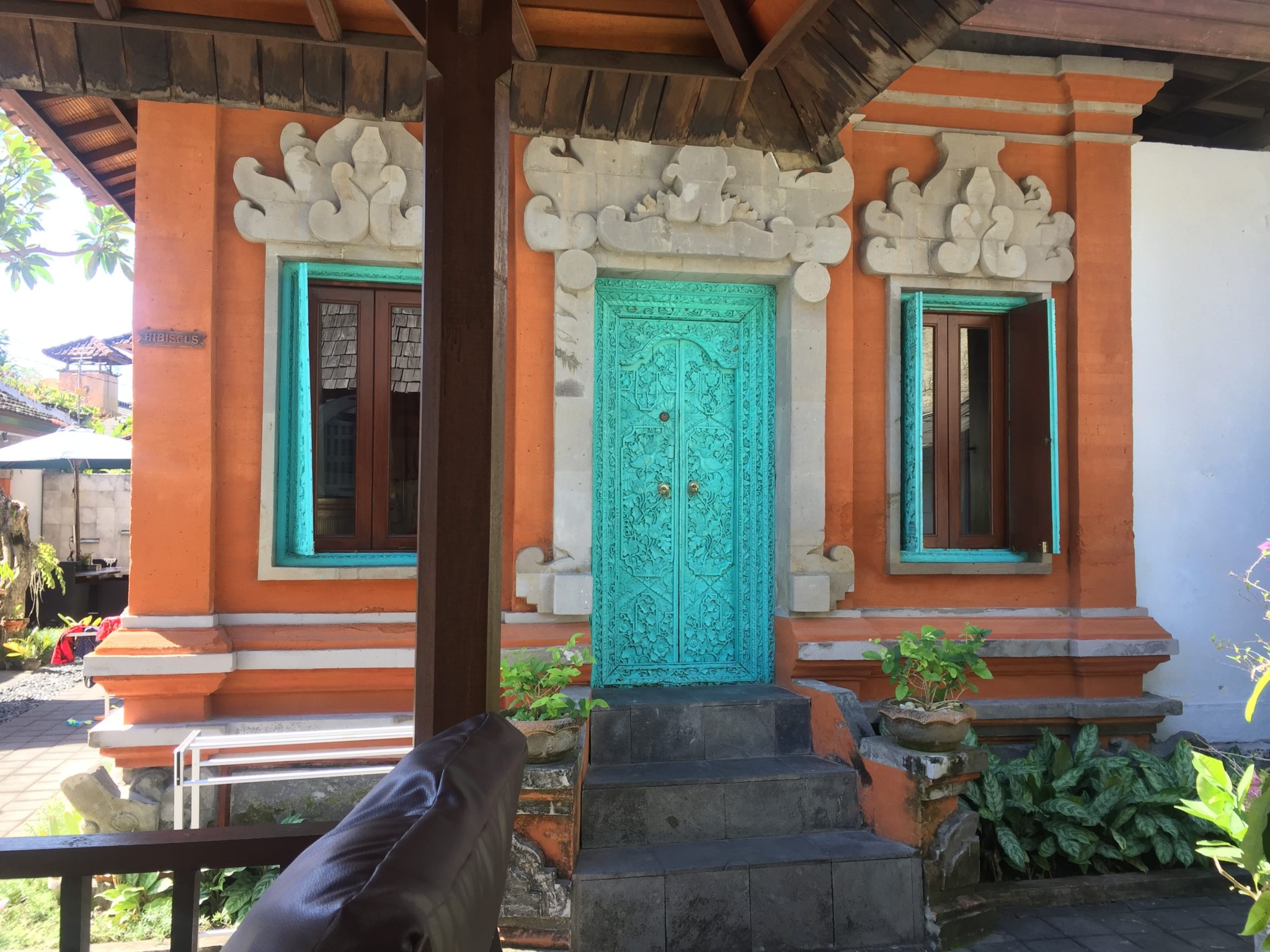 In Sanur habe ich für 4 Nächte das Sunhouse Guesthouse gebucht, es liegt im Süden, in der Nähe des grossen Mercure Hotels und damit auch um die Ecke vom Power of now oasis Yoga Studio, das ist reiner Zufall und irgendwie ein Zeichen, dass ich doch auch in Sanur mit Yoga weiter machen soll. Das Sunhouse Guesthouse hat nur 8 Zimmer, ist im balinesischen Stil inklusive Pool und Himmelbetten sehr liebevoll gestaltet, liegt aber laut an einer Kreuzung. Ab 6:30 Uhr wecken mich die hupenden Motorräder. 8 Uhr beginnt das Yoga, daher nicht weiter schlimm.