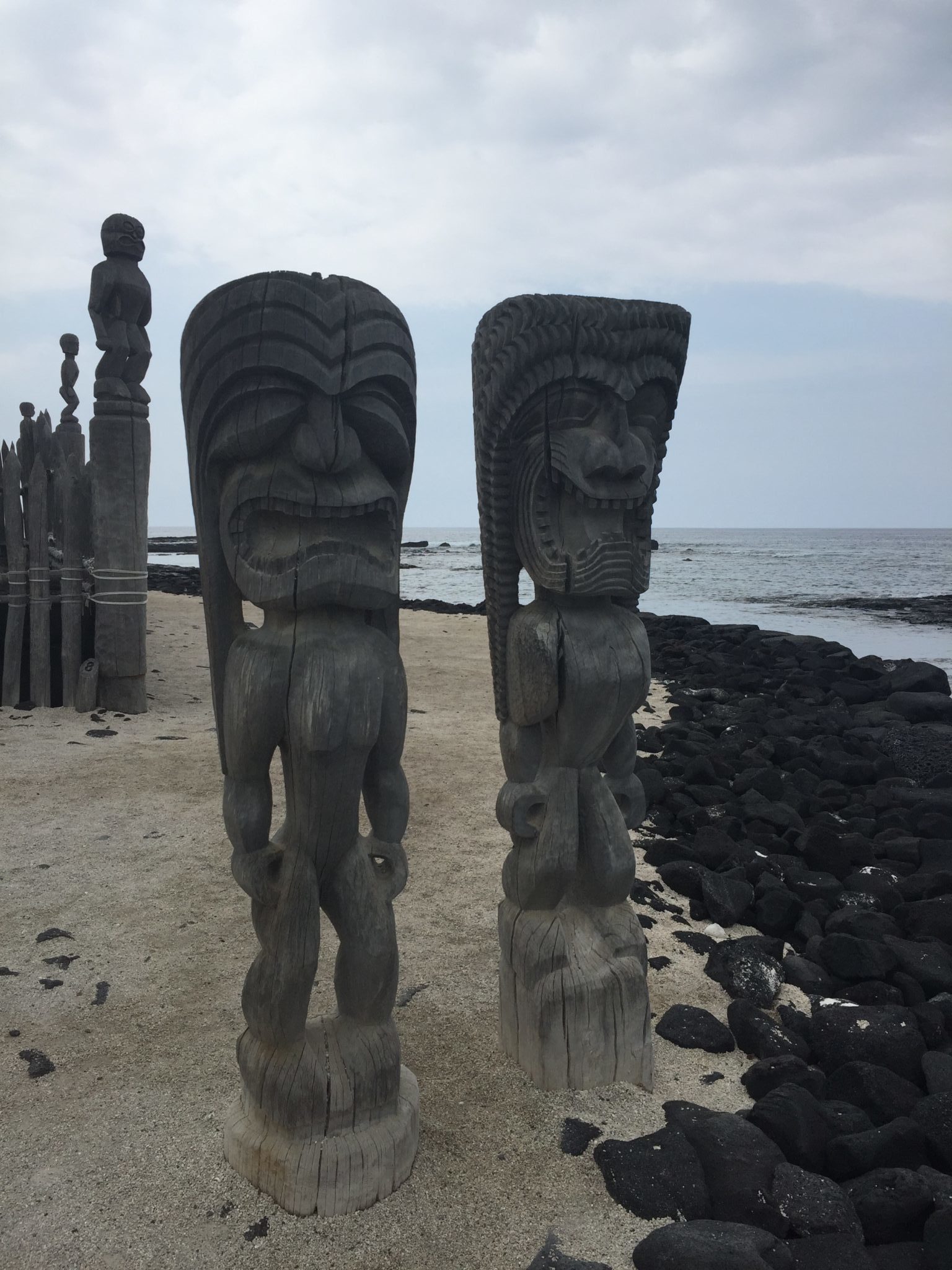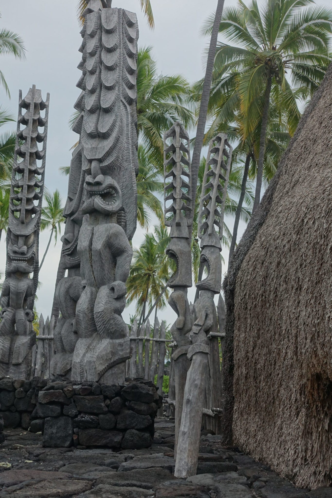 Wir verbringen locker 2 Stunden an diesem Strand, relaxen, gehen nochmal Schnorcheln. Anschliessend laufen wir in den nebenan liegenden Pu’uhonua o Hōnaunau National Historical Park