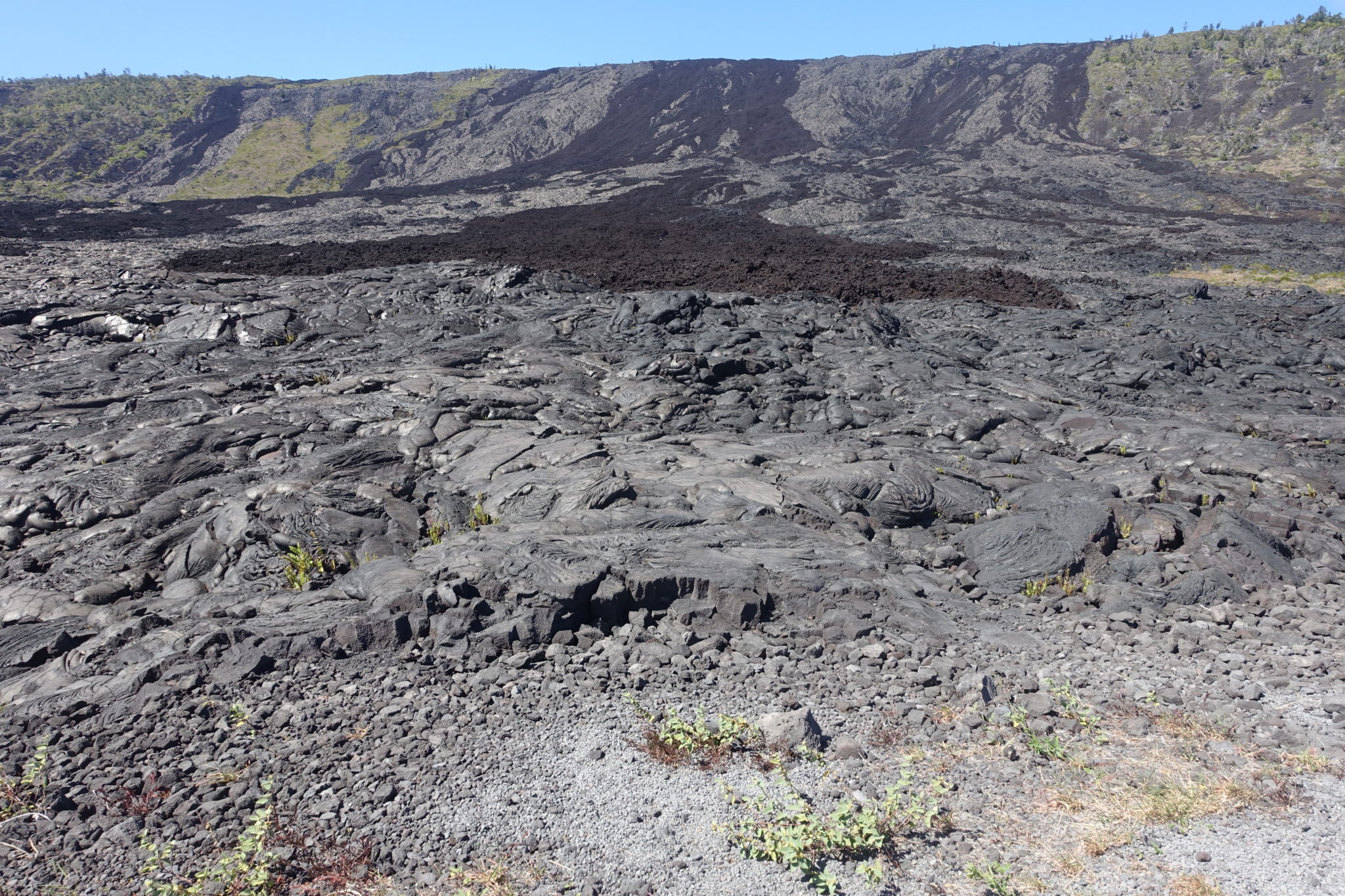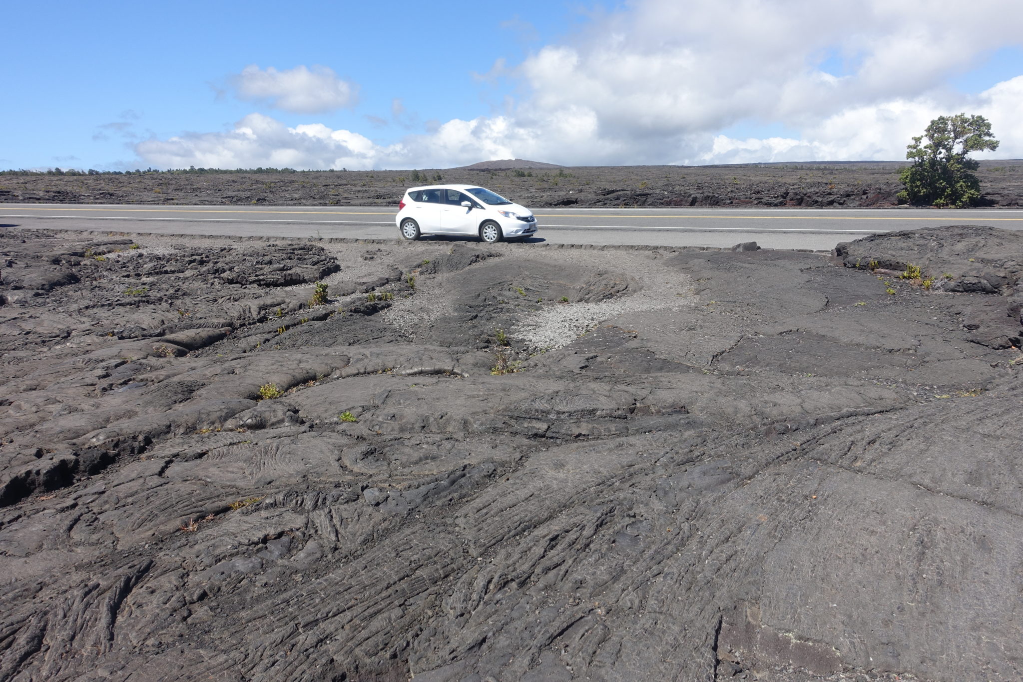 Wir übernachten wegen dem Volcano Nationalpark in der Nähe vom Volcano Village. Heisst mindesten ein Tag ist diesem Park gewidmet. Wir erkunden zuerst den Kilauea Iki Trail, der auf einer 6.5 km langen Route durch den Vulkankrater führt. Durch den Dschungel steigen wir hinab in den Kraterkessel, bewundern bunte Orchideen, die auf kargem Vulkanboden blühen und kommen schliesslich in der Mondlandschaft des Kraters an. Eine Schulklasse zeigt uns die „Haare“ des Vulkangesteins, das hätten wir selbst wohl nie entdeckt. Der Vulkan produziert tatsächlich durchsichtige haarartige Fäden. Sehr spannend zu fühlen. Anschliessend müssen wir wieder aus dem Vulkankrater aufsteigen, es ist heiss und feucht. Am Parkplatz, den wir nach dem Aufstieg erreichen, ist das Thurston Lava Tube ausgeschildert. Davon hatten wir gehört und sind gespannt, Lavainneres zu erkunden. Tatsächlich befinden wir uns in einer Lavaröhre, wo früher die flüssigere Lava durchgeflossen ist.