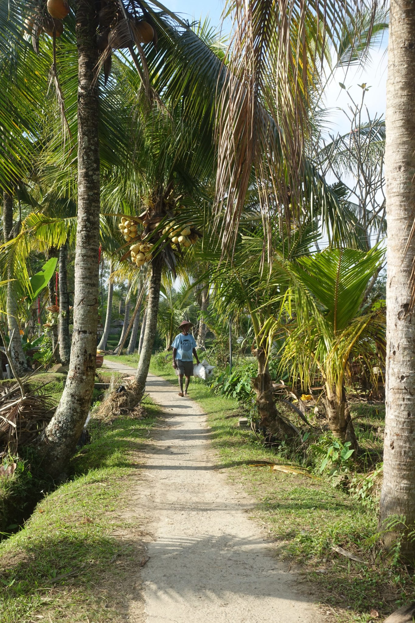 An der nördlichen Stadtgrenze liegen einige Reisfelder, die erstaunlicherweise nicht vom Touristenstrom heimgesucht werden. Dank maps.me finden wir (ich bin mit Laura aus Deutschland unterwegs, die ich bereits in Canggu kennenlernen durfte) den versteckten Weg und geniessen es, das ursprüngliche Leben zu sehen. Es tut gut den Verkehrslärm von Ubud hinter sich zu lassen.