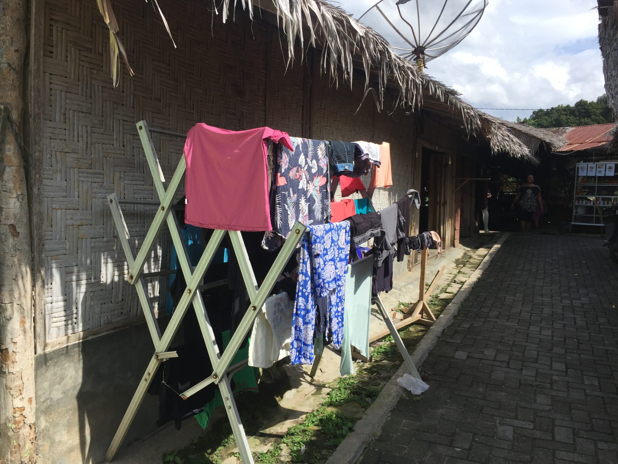 Den nächsten Tag verbringen wir ganz ruhig in Bukit Lawang, wir lassen die Erlebnisse revue passieren, tauschen uns mit anderen Reisenden aus und geniessen einfach noch etwas das dörfliche Flair am Fluss. Wir spazieren durch den Ort, den man in etwa einer Stunde abgelaufen ist. Lassen unsere Wäsche (ab 15000 Rp./kg) waschen, die wir auf unserem Spaziergang an der Strasse trocknend wieder finden und gehen nochmal über die abenteuerlichen Hängebrücken bevor wir den Abend im Garden Inn mit Liedern zur Gitarre ausklingen lassen. Es war wunderschön!
