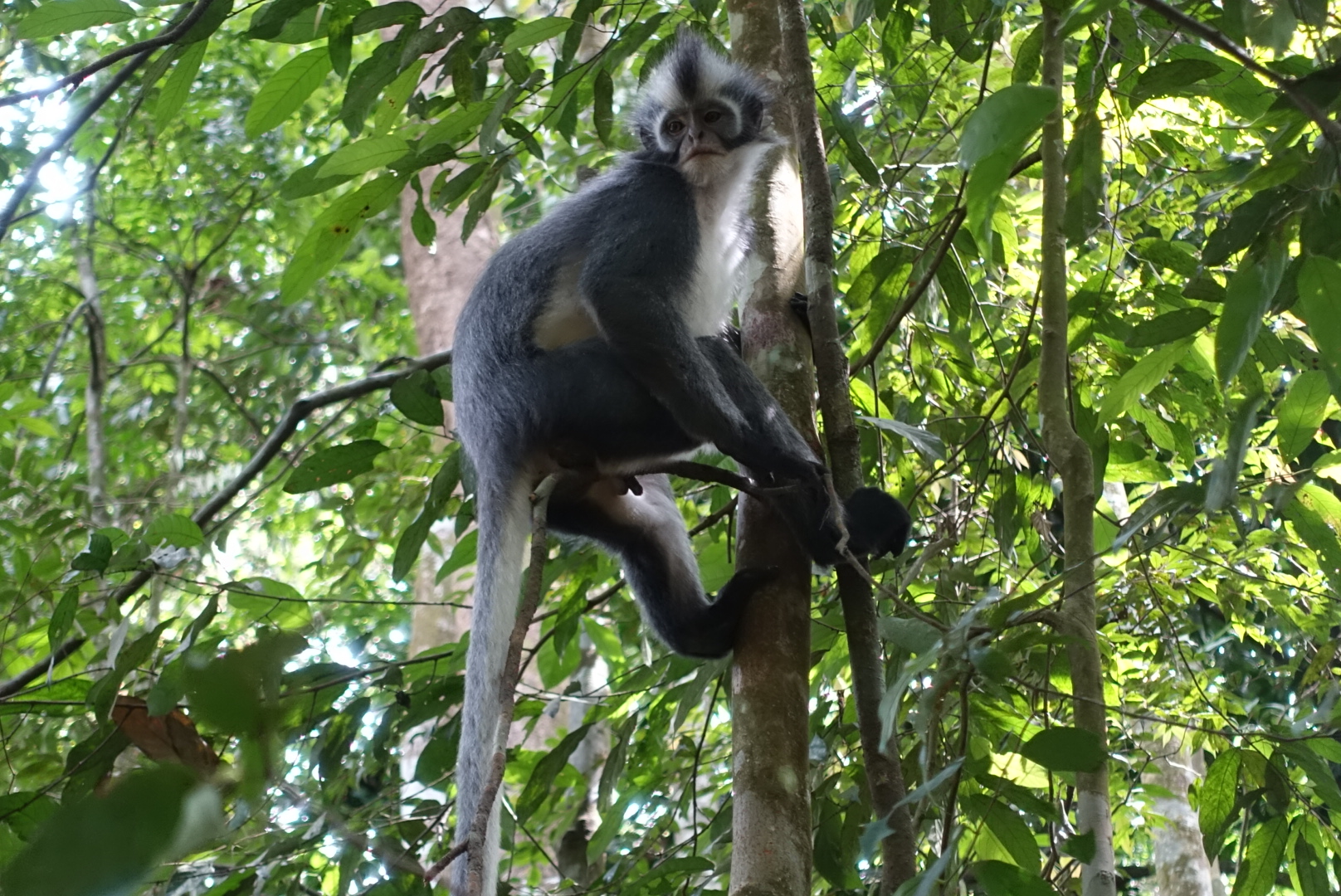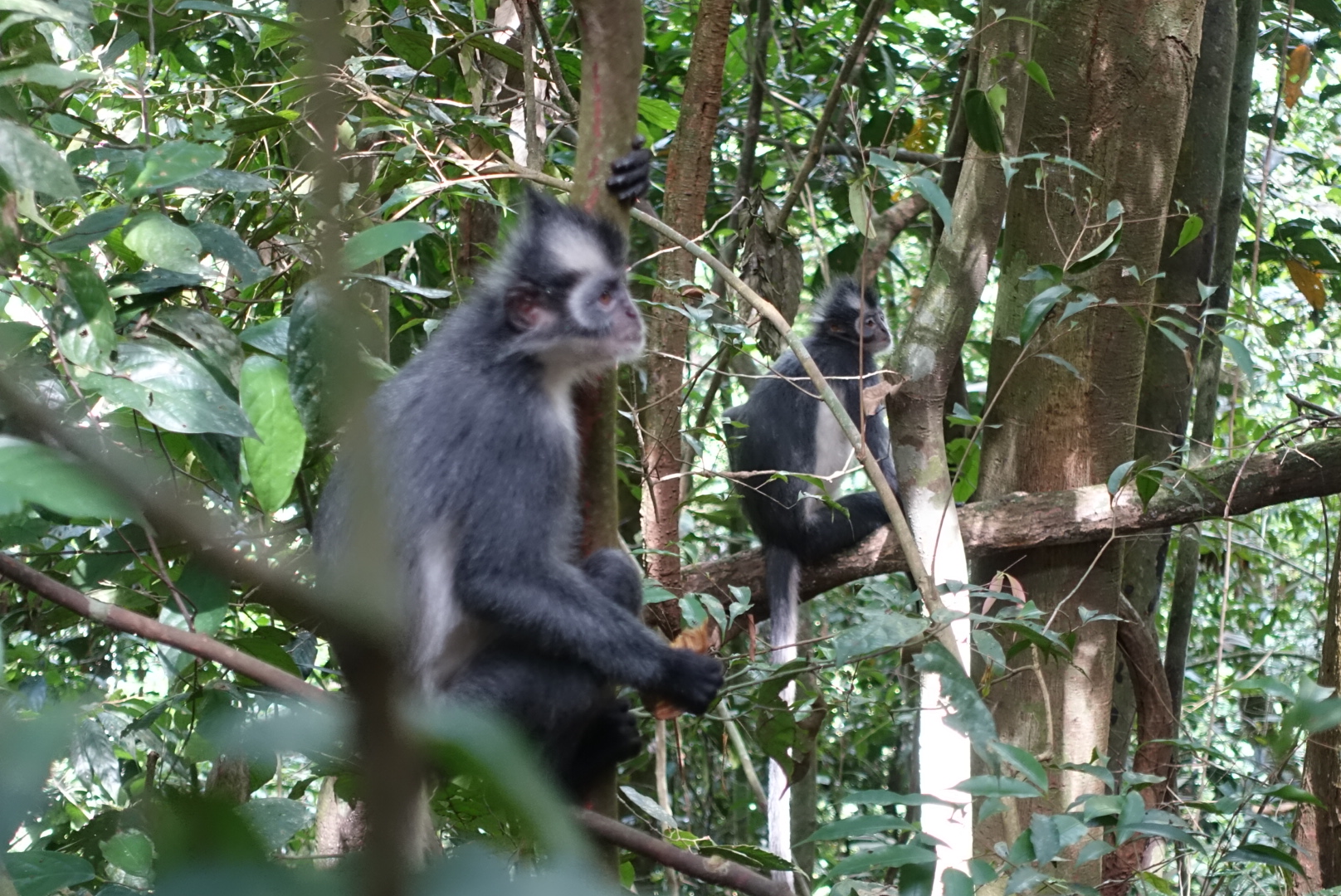 Weiter geht es tiefer hinein in den Dschungel und es dauert nicht lange, bis es in den Bäumen raschelt. Es sind Makakenaffen, recht viele und sie haben Junge dabei. Schon spannender sind die „funky monkeys“ eine Art Gibbons, die ich hier zum ersten mal sehe. Eine grosse Gruppe dieser Affen springt von Baum zu Baum, sie rennen am Boden entlang und sind plötzlich überall. Wir müssen uns regelrecht in Sicherheit bringen, schliesslich sind wir in ihrem Dschungel. Ein Erlebnis, diese Affen zum Greifen nah und vor allem so aktiv zu sehen! Wir teilen das Erlebnis allerdings auch mit etwa 50-100 anderen Touristen.