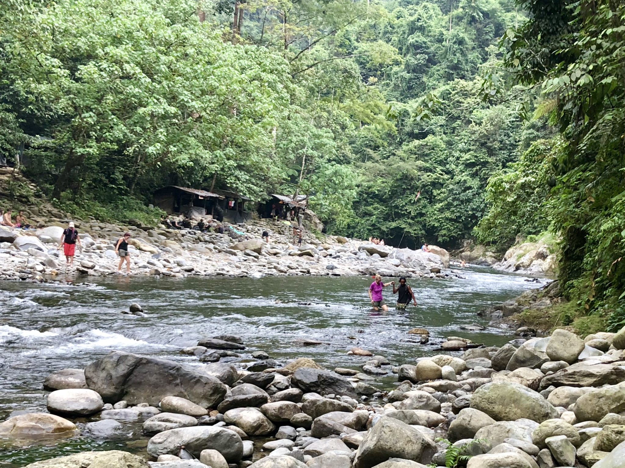 Die Nacht im Dschungel war fantastisch, alle haben gut geschlafen. Das Rauschen des Flusses hat die Dschungelgeräusche leider etwas übertönt. Es gibt Tee und Kekse, bevor es auf eine kleine Wanderung zum Wasserfall geht. Da dafür zwei Flüsse überquert werden müssen, nehme ich aufgrund meiner Verletzungen daran nicht teil. Dafür helfe ich dem Koch das Frühstück zuzubereiten. Es ist erstaunlich, was er mit zwei Kochern, zwei Töpfen und minimaler Ausstattung für 6 Gäste zubereitet. Wir schneiden gemeinsam eine grosse Obstplatte, als ich plötzlich unseren Guide Anton mit einer düsteren Miene auf mich zukommen sehe. Dahinter Michaela mit einem blutigen Kinn, sie ist am Wasserfall gestürzt und muss verarztet werden…