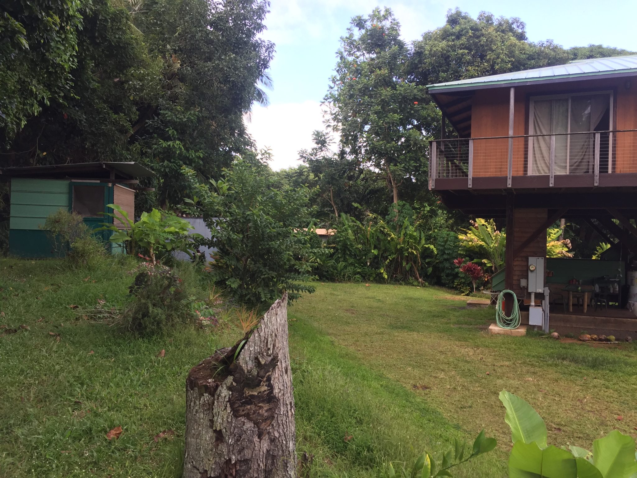 Gegen halb fünf erreichen wir das airbnb von Markus, er ist ein Einheimischer und hat ein riesiges Grundstück mit Kokosnusspalmen, Bananen und Avocadobäumen. Die Unterkunft für 117 Dollar ist ein kleines zwei Personenzelt, das er in einer Holzhütte aufgestellt hat. Es ist extrem einfach, wie Camping, mit kalter Dusche. Er ist so nett und lässt uns seine heisse Aussendusche nutzen. Wir sammeln fleissig Avocados für unser Frühstück ein. Dschungelleben pur! In der Nacht regnet es heftig. Wir sind froh, über das Dach über unserem Zelt, aber das ist trotzdem keine 117 Dollar wert. Hier bestimmt eindeutig die Nachfrage den Preis. Wir sind froh, dass wir wenigstens günstiges Streetfood zum Abendessen in Hana finden. Burritos für 6 Dollar.