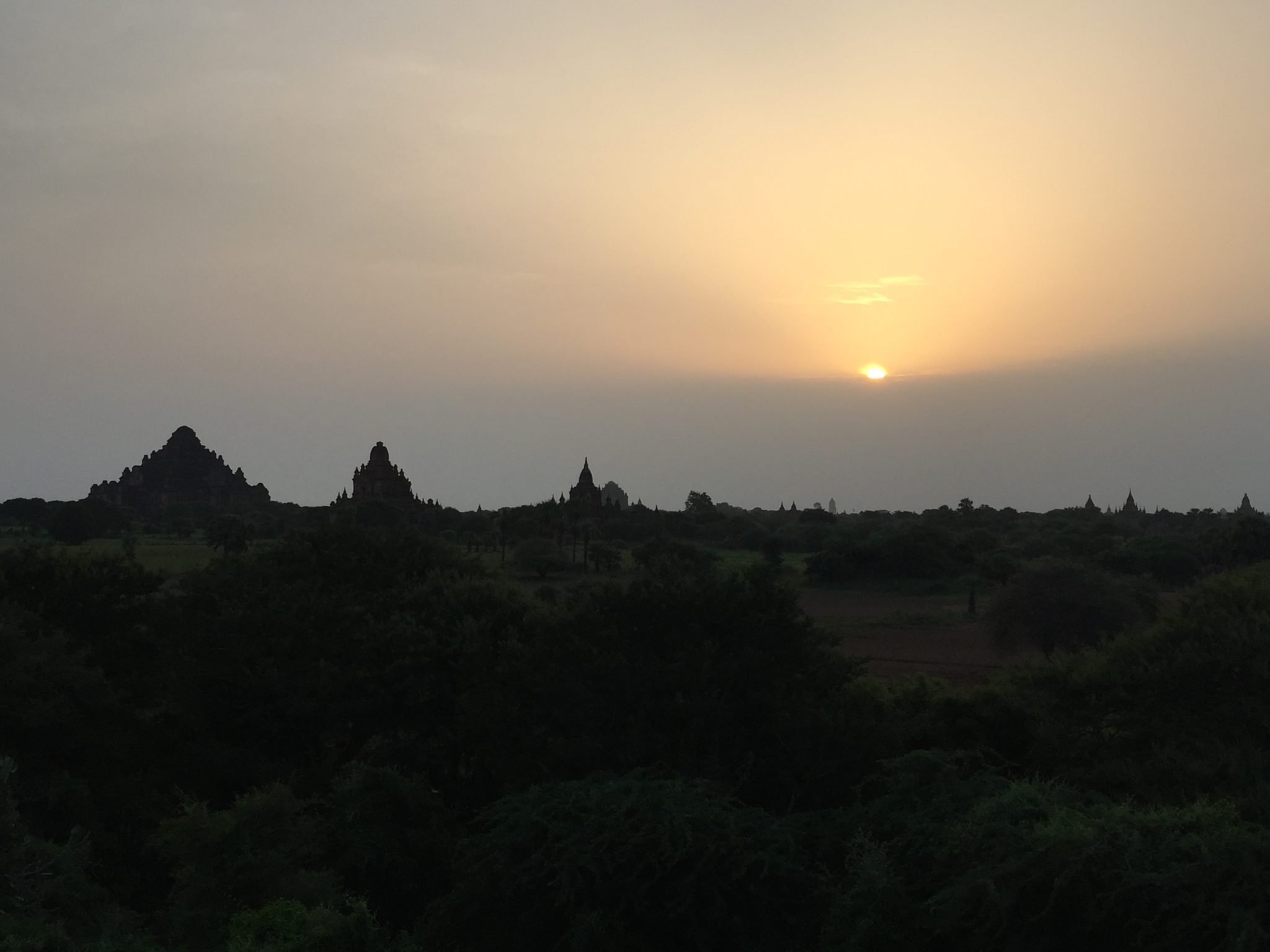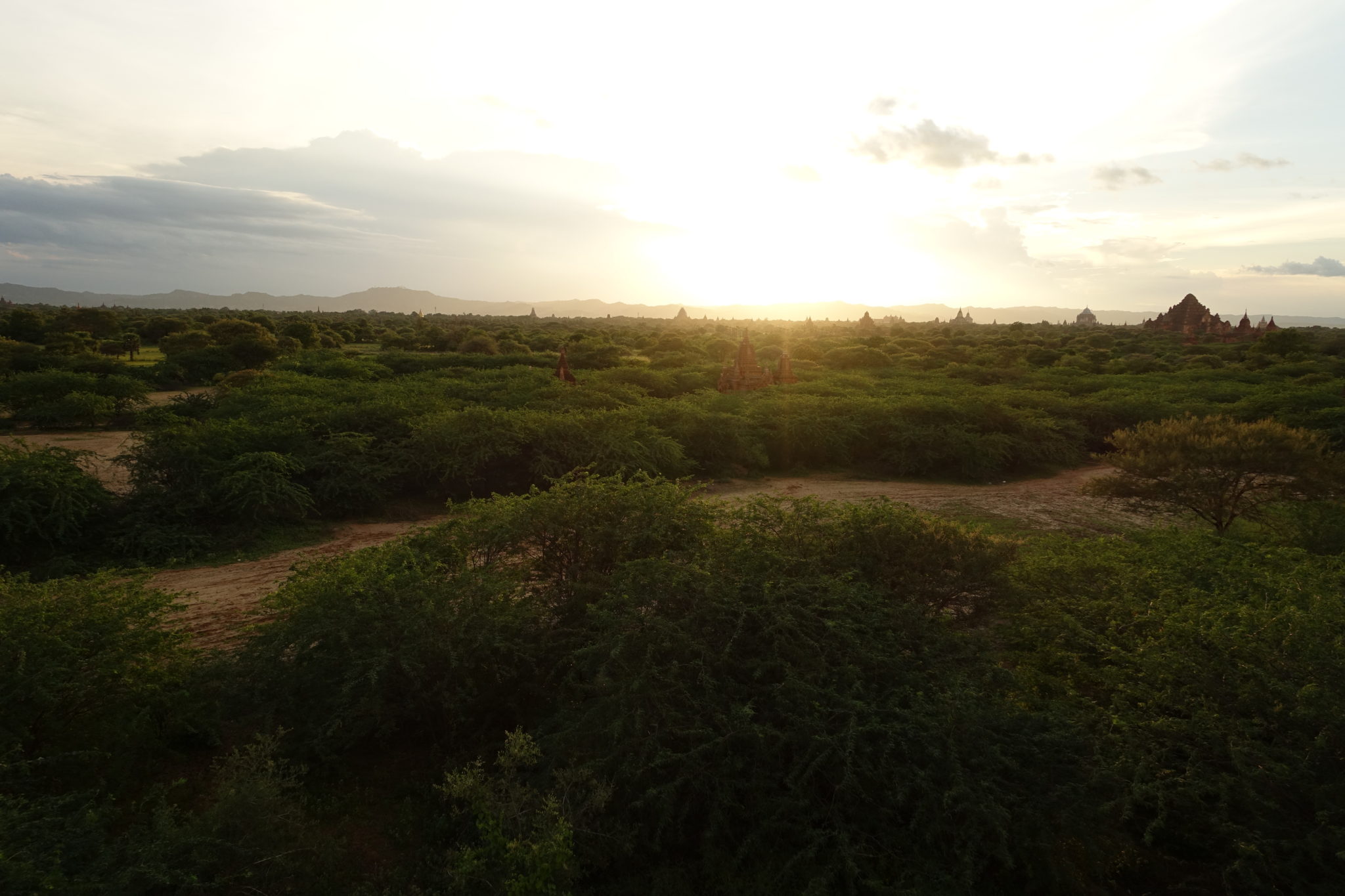 Den Sonnenuntergang sehen wir vom Tempel, neben Alodawpye Phaya. Den Weg dorthin zu finden ist nicht einfach und irgendwie doch, weil man wie wir am Ende entdecken, von einem der grössten Tempel (Alodawpye Phaya) einfach hin laufen können. Wir hätten uns also die Fahrt durchs Gestrüpp sparen können! Die Einheimischen die uns immer wieder auf der Fahrt ansprechen, ob sie uns Tempel für Sonnenauf- oder -untergang zeigen können, wimmeln wir ab, weil sie nur Geld wollen uns uns letztendlich die gleichen Tempel zeigen würden, die wir schon kennen.