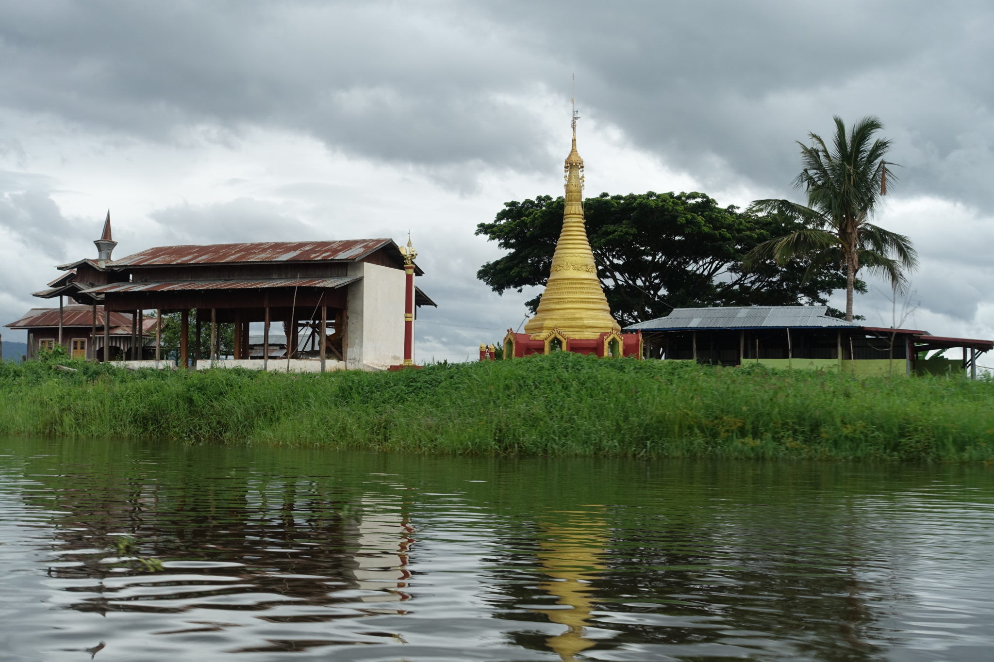 Kurz vor dem Ziel bleiben wir zu allem Unglück auch noch im Sumpf stecken, es dauert einige Zeit, bis unser Skipper und Guide den Motor von Sumpfpflanzen befreit hat. Dabei hatte er uns trotz Starkregen sogar noch die Wasserbüffel gezeigt, das haben wir wirklich nicht verdient! Ich trau mich gar nicht die Kosten der Tour zu erwähnen: 10 Euro inklusive Mittag, allen Touren durch die Handwerke und Kanutour. Einer meiner besten Ausflüge in Myanmar!