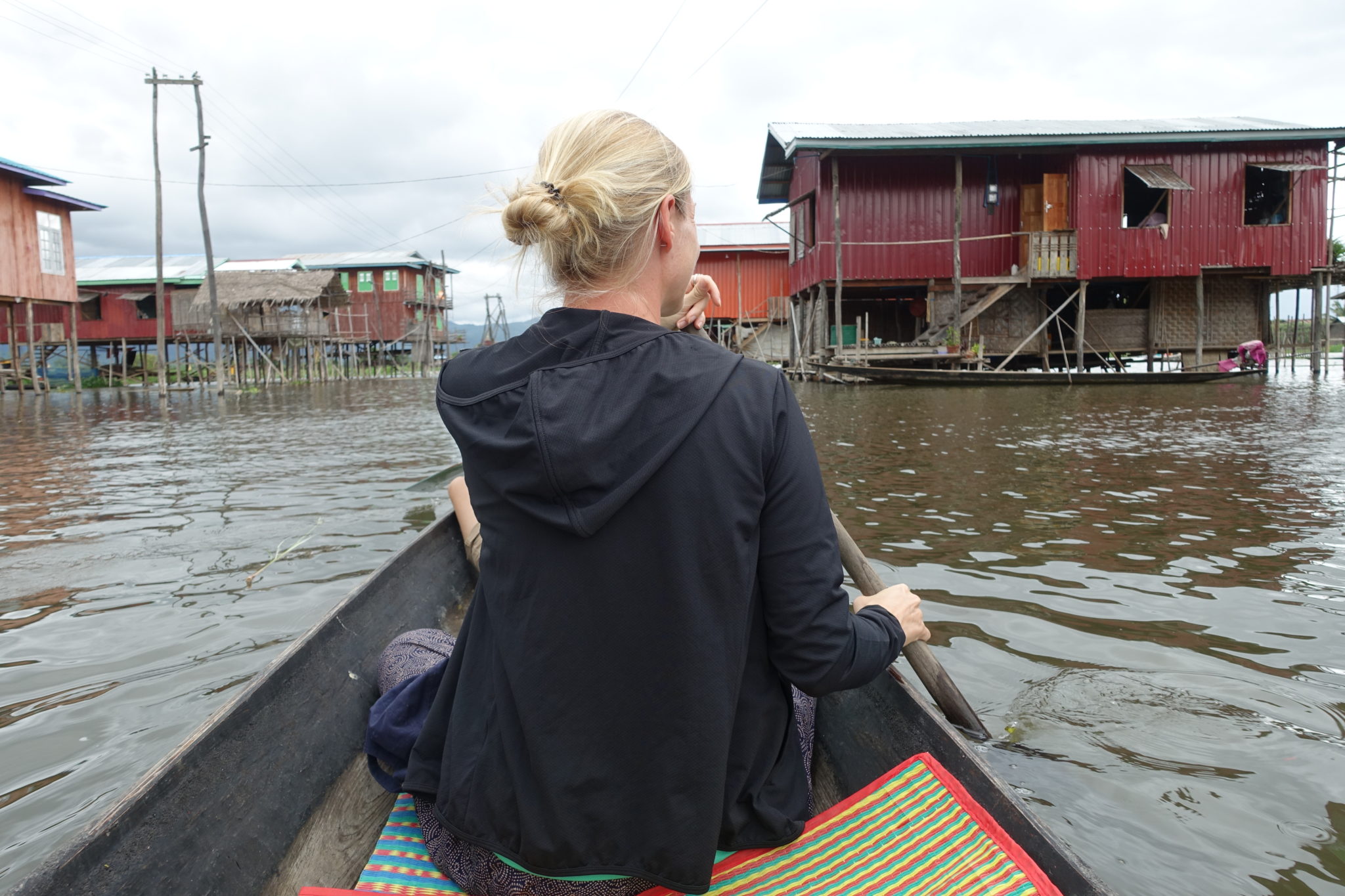 Anschliessend fahren wir weiter zum Weben und zur Zigarettenherstellung, selbst die Nichtraucher probieren die Zigaretten mit den verschiedensten Geschmacksrichtungen. Danach gehts weiter zu einer Kanutour, wo wir tatsächlich selbst rudern dürfen und die Gassen des Dorfs auf dem Wasser erkunden. Wir sehen das Leben auf und im Inlay Lake, es ist beeindruckend, so nah dran zu sein.