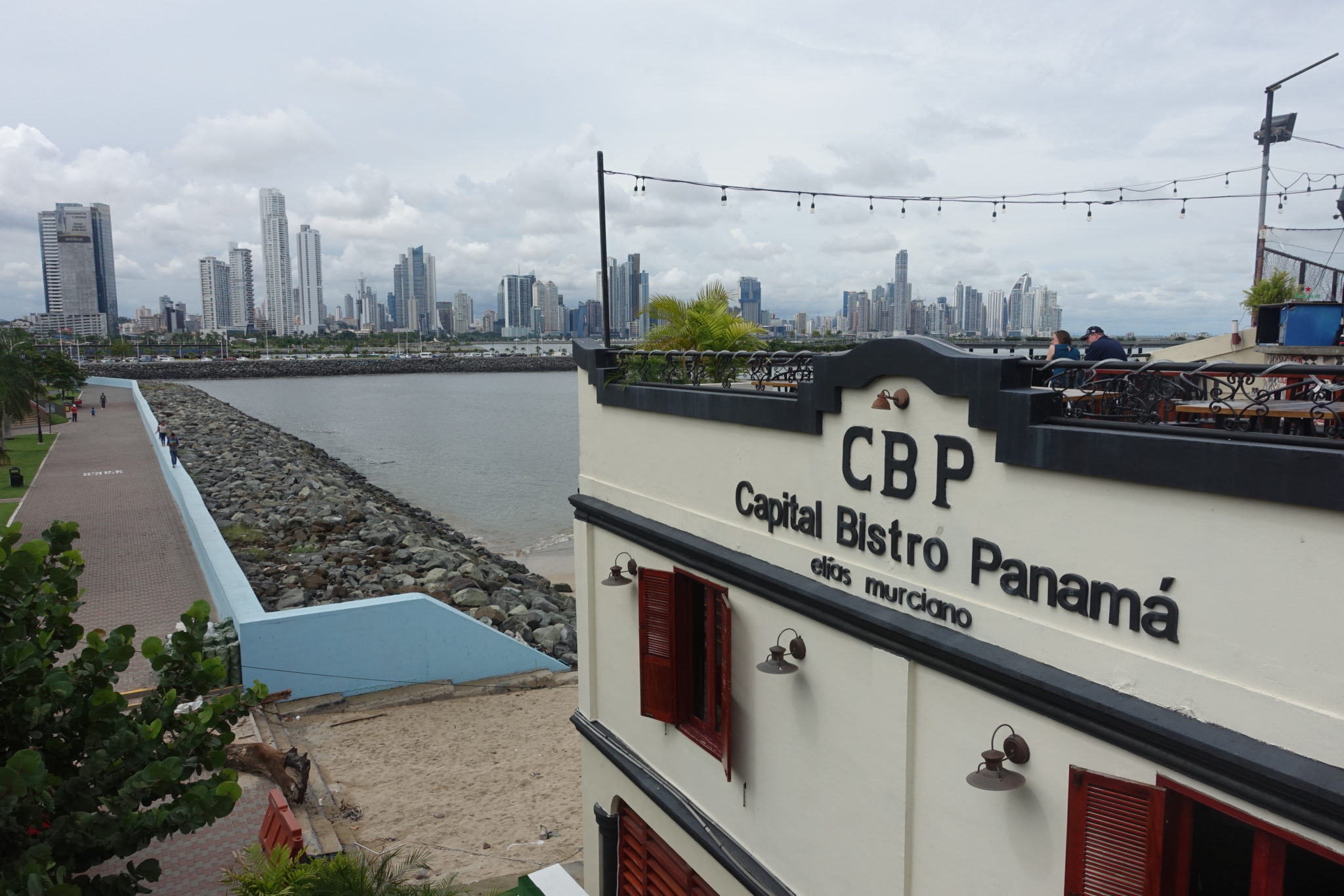 Kurz hinter der Avenida Central, erreichen wir die schön rausgeputzte Altstadt. Etwas disneylandmässig fast, so frisch angemalt und blank geputzt. Eine der vielen Kirchen bietet eine willkommene Abkühlung, der Gottesdienst endet gerade, hier sehen wir (endlich) die ersten Touristen. (Nicht dass wir sie vermisst hätten!) Alles in allem kommt uns die Stadt wie ausgestorben und sehr leer vor. Locals sieht man quasi nicht in den Strassen. Die meisten Läden sind Sonntags geschlossen. Vom Plaza de Francia (einer Art Stadtmauer) hat man einen schönen Blick auf die Skyline von Panama, sowie auf den Panama Kanal mit Biomuseum in der Ferne, wo sich die Schiffe vor dem Kanal für die Einfahrt einreihen. Am Rande der Altstadt entdecken wir eine Art Hippie Viertel, wo wir endlich einige Einheimische in ihren bunten Holzhäusern auf den Balkons sehen. Anschliessend gehts zum Fischmarkt, wo man gut und recht günstig lecker Ceviche essen kann! Im dortigen Hafen liegen noch einige kleiner Fischerboote. Wir haben der Altstadt an einem Samstag nochmal die Chance gegeben für uns zu glänzen, doch auch an diesem Tag wurden wir mit leeren Strassen enttäuscht. Immerhin finden wir noch den Strand der Stadt. Aber in dem eher schmutzigen Wasser will auch niemand baden, somit sind wir hier alleine und bummeln noch etwas die Promenade entlang. Man benötigt eigentlich nur einige wenige Stunden um Panama City gesehen zu haben.