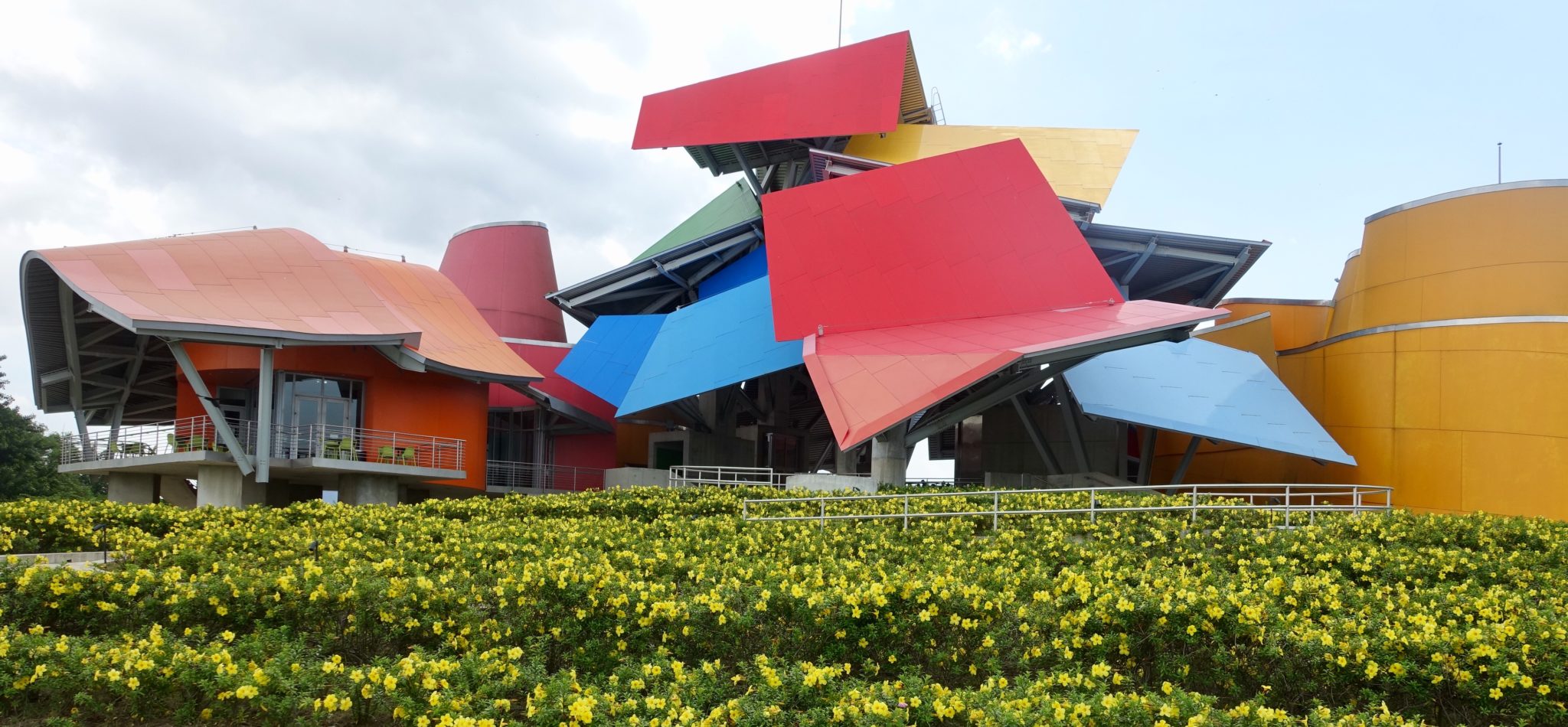 Die Metro bis zur Albrook Mall, von dort versuchen wir mit dem Bus bis zum Biomuseum zu kommen. Die Amador Route wäre das, aber hier kommt irgendwie ewig kein Bus in den wir einsteigen können. Einige fahren mit dieser Aufschrift an uns vorbei, andere lassen immer wieder nur Leute raus. Das ist so frustrierend, dass wir nach etwa 20 Minuten Warterei in ein Taxi für 3 Dollar steigen. Das Biomuseum liegt direkt am Kanal, architektonisch interessant, markant mit dem bunten Dach. Wir gehen durch den hübsch angelegten Garten zum Kanal, es ist heiss, die Kolibris holen sich Nektar aus den Blumen des Museumsgartens. Der Eintritt kostet 15 Dollar. Im Museum ist es wieder wahnsinnig kalt im Vergleich zu draussen, 21.5 Grad. Es gibt einen spanischen, französischen oder englischen Audioguide, nicht viele Exponate, aber dennoch interaktiv und super interessant gestaltet! Man erfährt über die Entstehung Panamas, die Plattentektonik, die Fusion der Fauna- und Flora von Süd- und Nordamerika. Die Besiedelung und den Bau des Kanals. Bis Ende 2018 soll es noch ein tolles riesiges Aquarium mit Fischen aus beiden Ozeanen, die der Panama Kanal verbindet, geben! Das grösste in Südamerika.