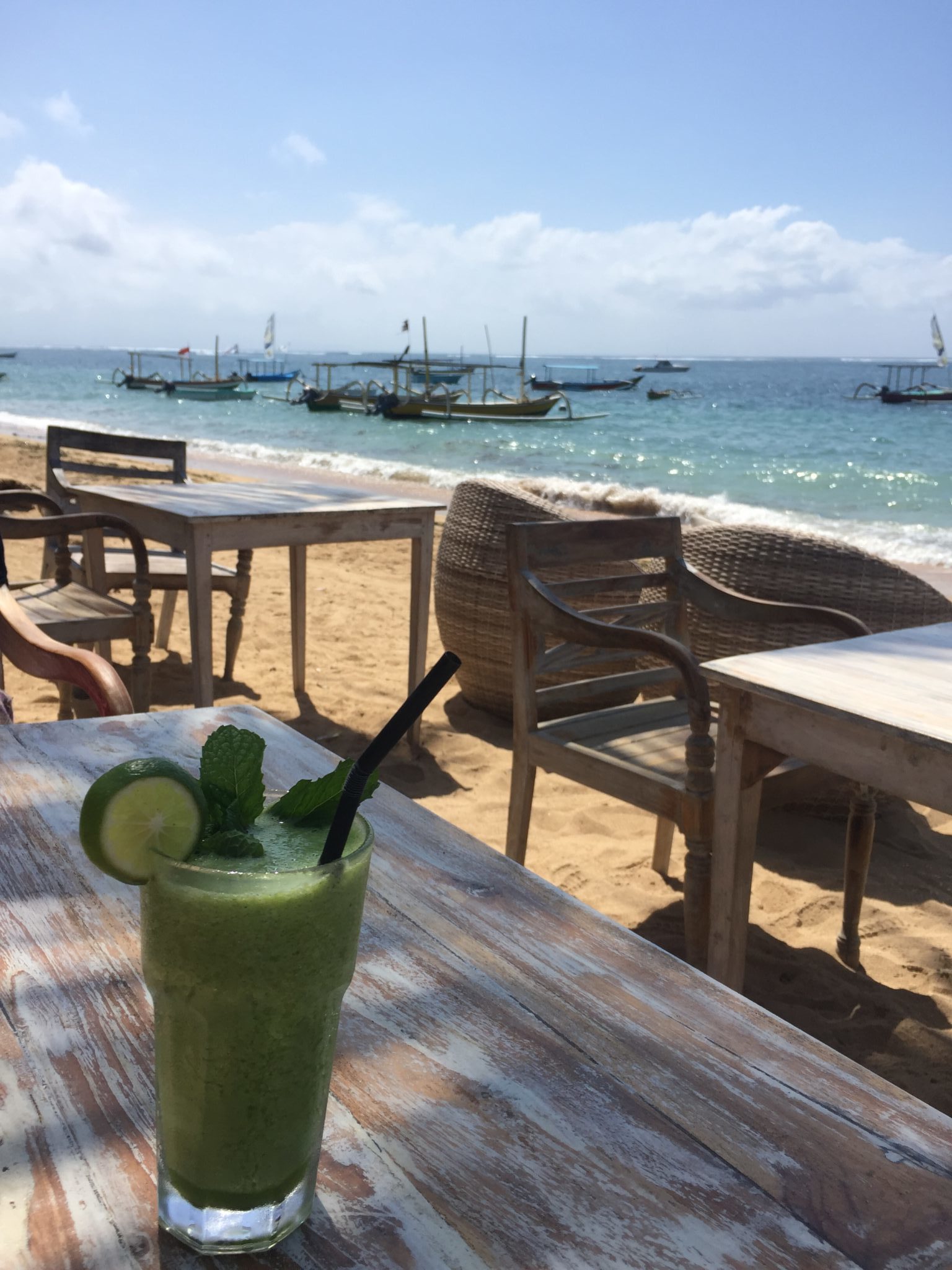 Nach einem tollen Frühstück im Lilla Pantai am Strand, mit den Füssen im Sand und dem Salzwind um die Nase, verabschiede ich mich von Sanur.