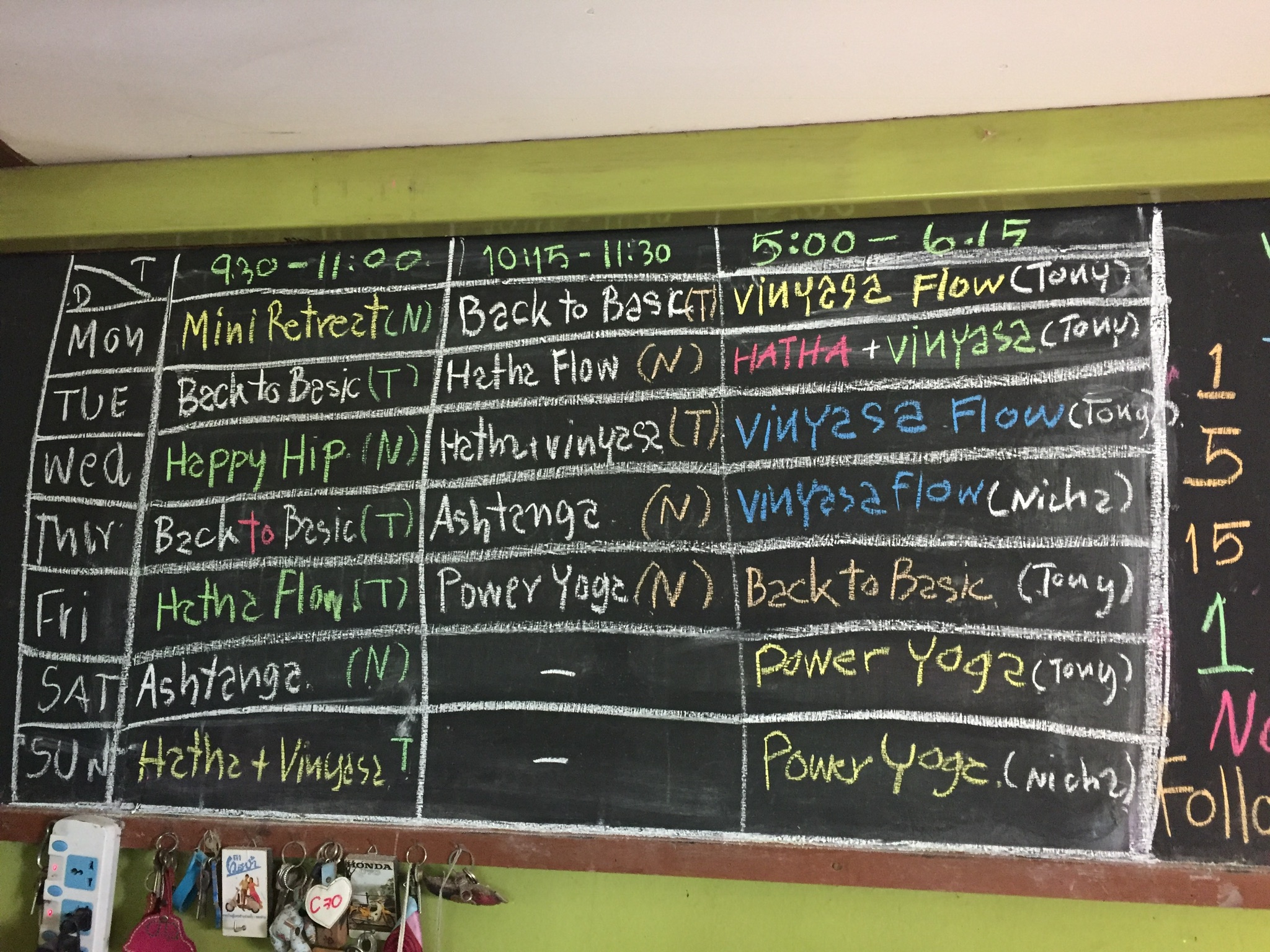 Das Yoga in meiner Unterkunft wird von Tony und Nicha (beide Thai, aber gut zu verstehen) angeleitet. Nichas Mini Retreat zum Montagmorgen war etwas gewöhnungsbedürftig, Lachyoga, Atemtechniken, Ecstatic Dance und Umarmungen in einer Stunde. Alle anderen Stunden war tolles Hatha Yoga mit super Allignments, allerdings ist der Raum super heiss, weil sie den Ventilator bewusst nicht anstellen.
