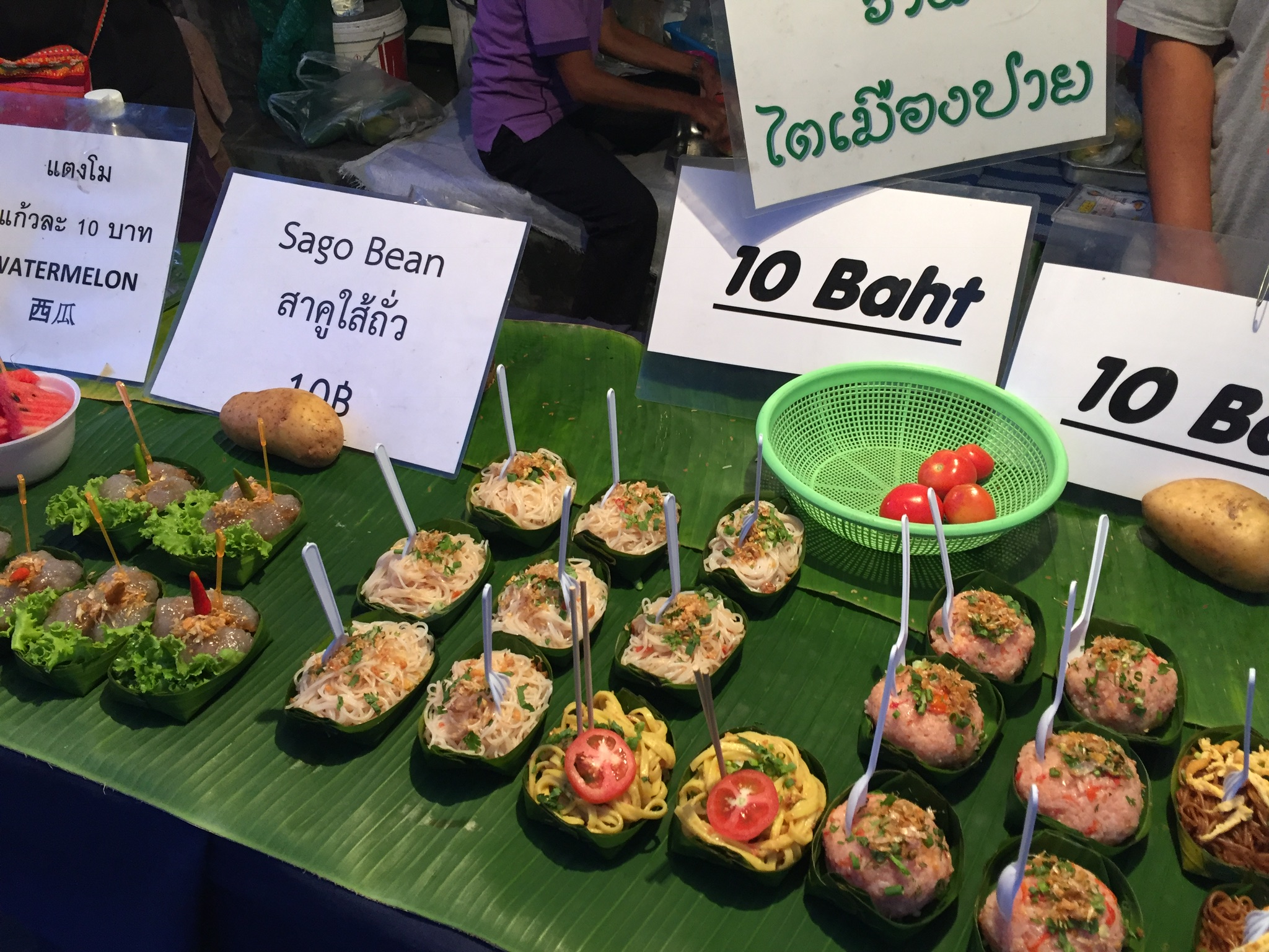 Walking Street – Street Food – vor allem der Burmesische Salat, die kleinen Häppchen und der Bus, wo immer alle Schlange stehen…