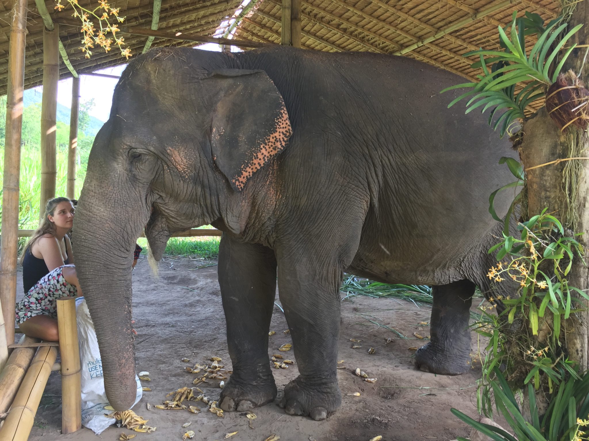 Ich habe lange überlegt, ob ich überhaupt so eine Tour machen sollte, hatte ich doch genug Elefanten in der Etoscha Pfanne in Namibia, im Addho Elephant Nationalpark in Südafrika, in Sri Lanka und sogar in Indien (in mehr oder weniger freier Wildbahn) gesehen. Aber irgendwie gehört es doch dazu und ist im Norden Thailands eine der Hauptattraktionen. Früher ist man hier sogar auf Elefanten geritten, das ist zum Schutz der Tiere inzwischen zum Glück sehr verpönt und wird stark verurteilt. Ich entscheide mich für die Non-profit Organisation Conserve Natural Forests, Aufforstung und kein Profit scheinen mir sinnvoll, ob es dabei den Elefanten gut geht lässt sich vorher kaum recherchieren. Die Tour kostet 1000 nicht verhandelbare Baht Spende. Das hätte mir schon komisch vorkommen müssen…