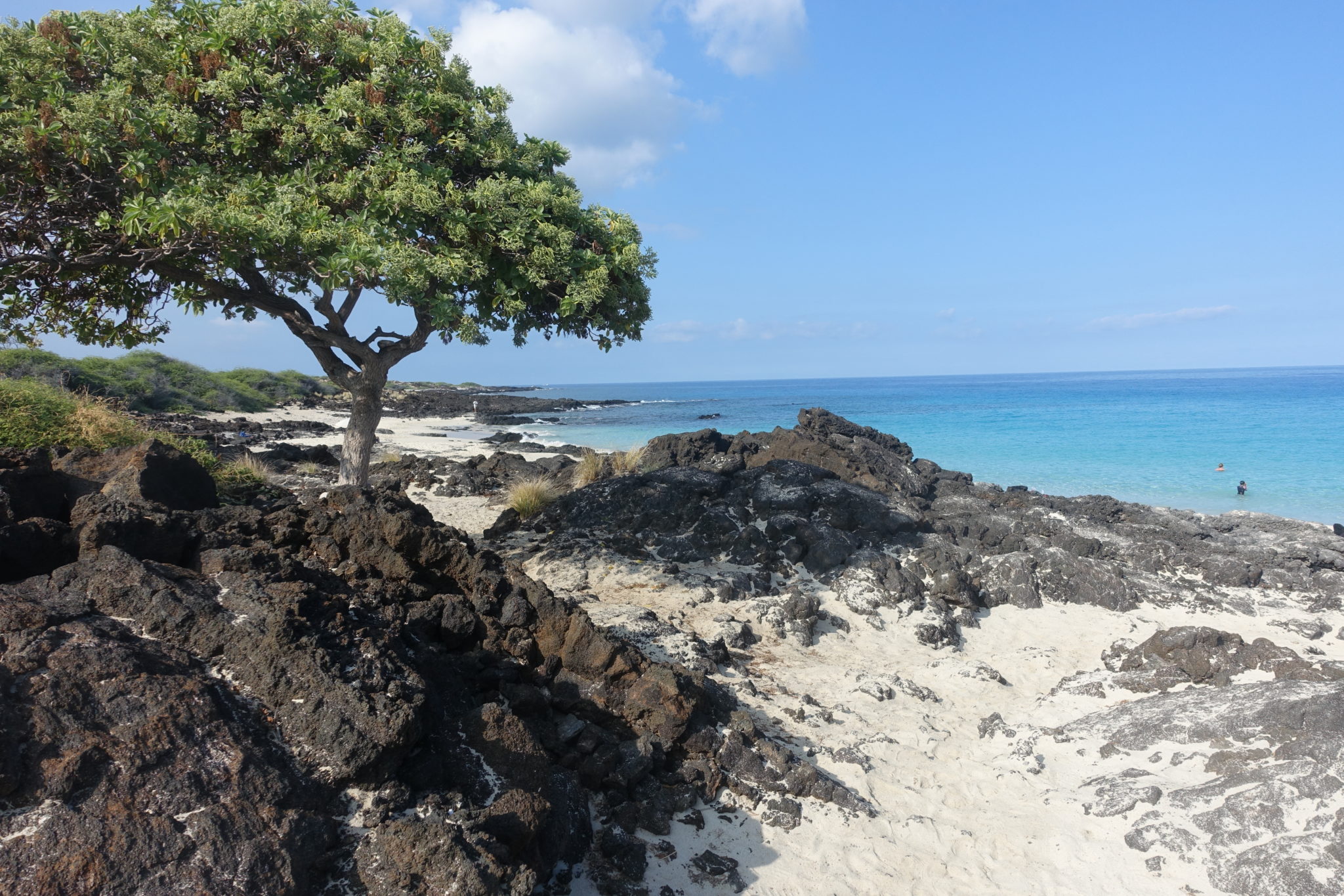 Der Manini’owali Beach hat den feinsten weissen Sandstrand, den wir auf Big Island gesehen haben. Allerdings gibt es hier quasi keinen Schatten, nach 11 Uhr ist es nicht mehr auszuhalten!
